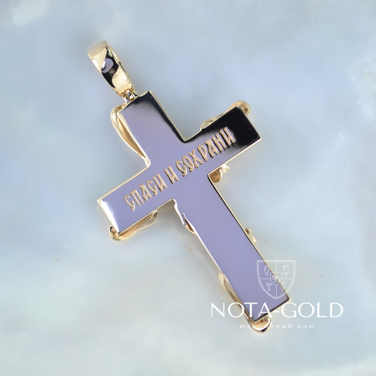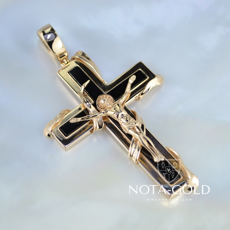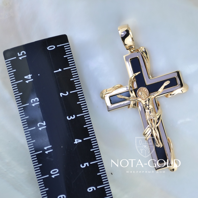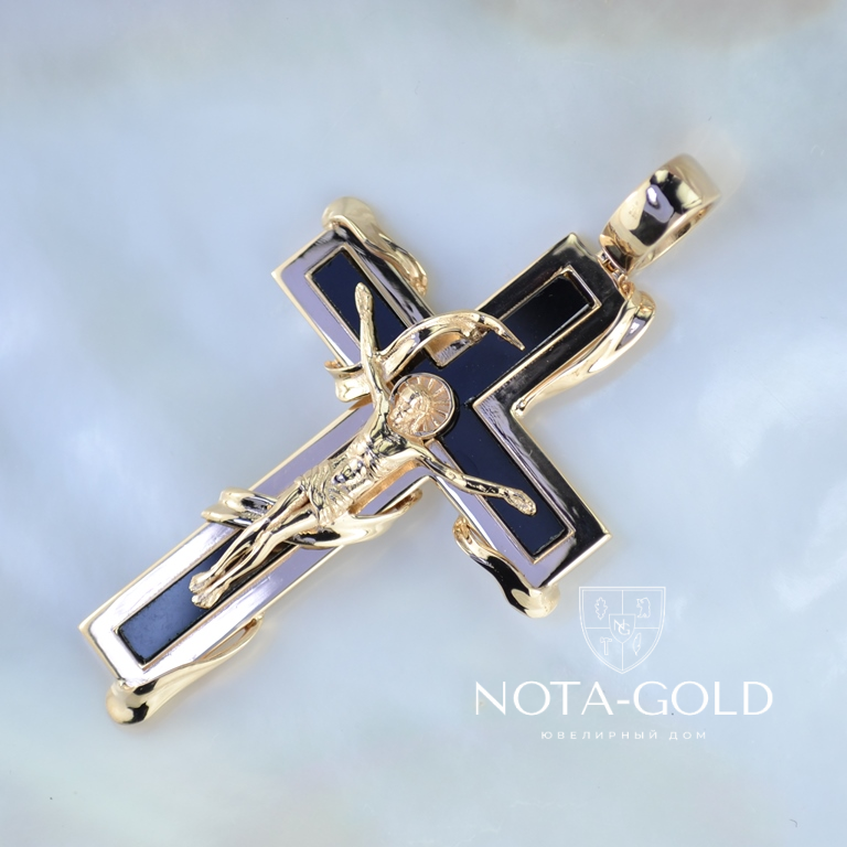 Эксклюзивный мужской серебряный крест с позолотой и чёрным ониксом (Вес 15 гр.)
