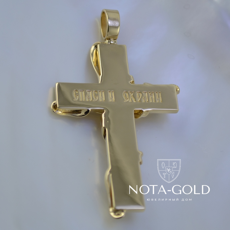 Эксклюзивный серебряный крестик с позолотой, ониксом и фианитами (Вес 16 гр.)