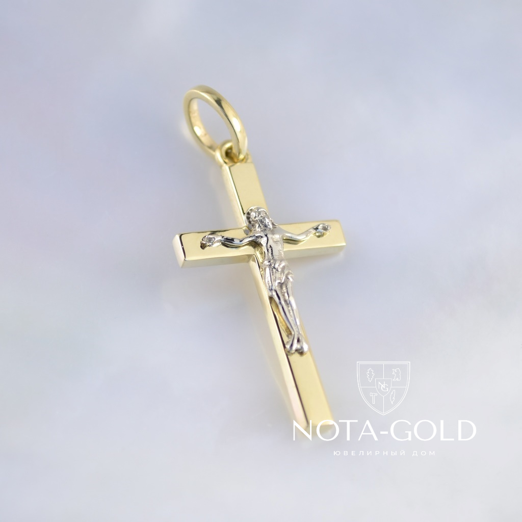 Нательный крестик из позолоченного серебра Спаси и сохрани с распятием (Вес 2 гр.)