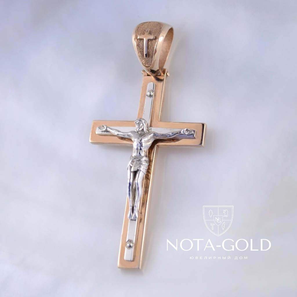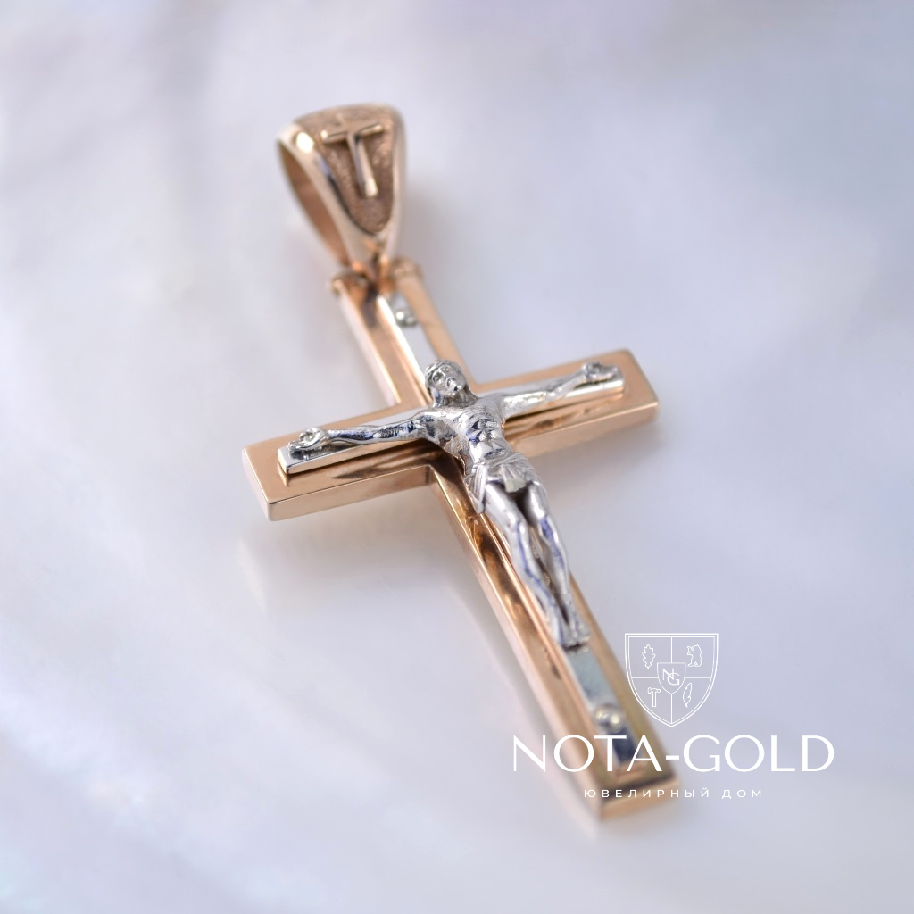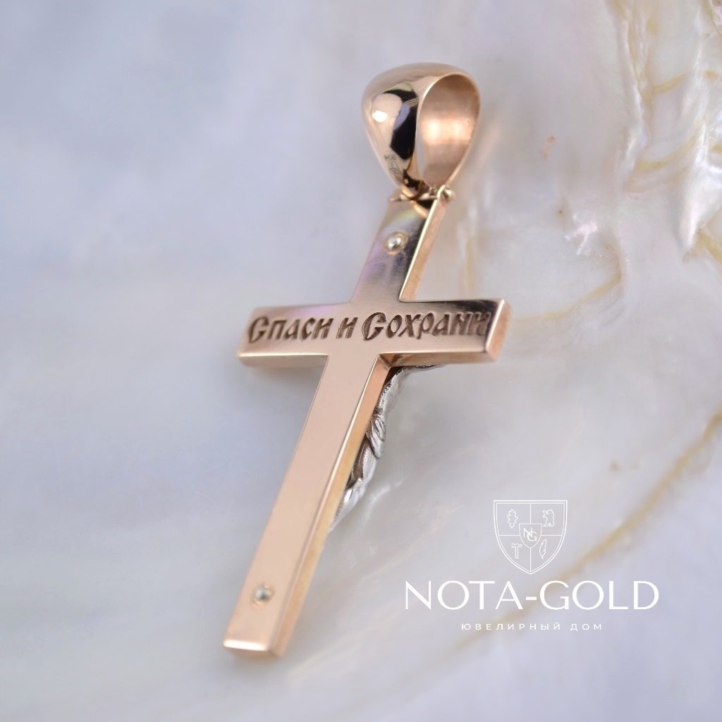 Нательный крест из позолоченного серебра Спаси и сохрани с распятием (Вес 7 гр.)
