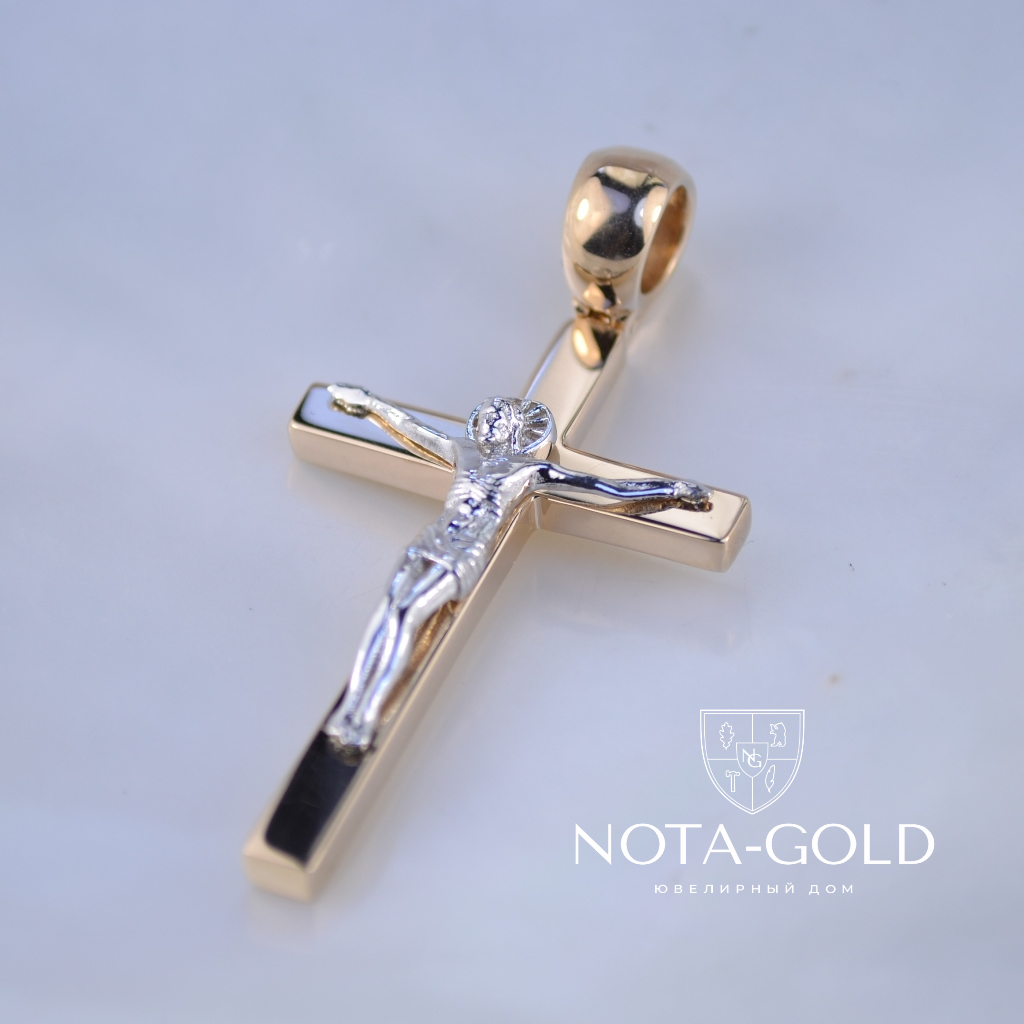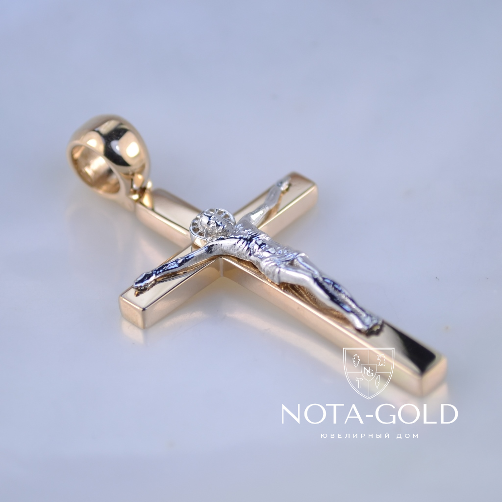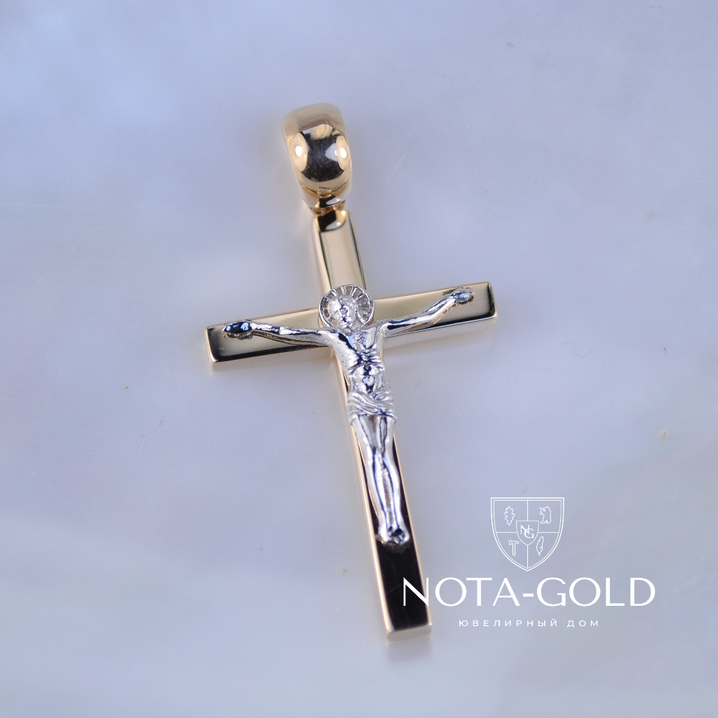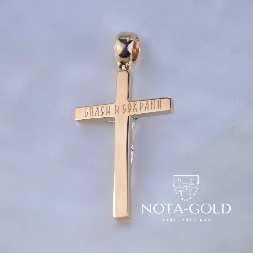 Православный крест из позолоченного серебра с распятием и гравировкой Спаси и сохрани (Вес: 5 гр.)