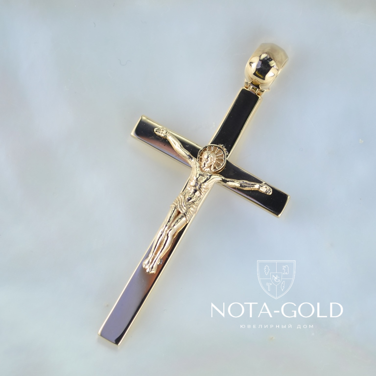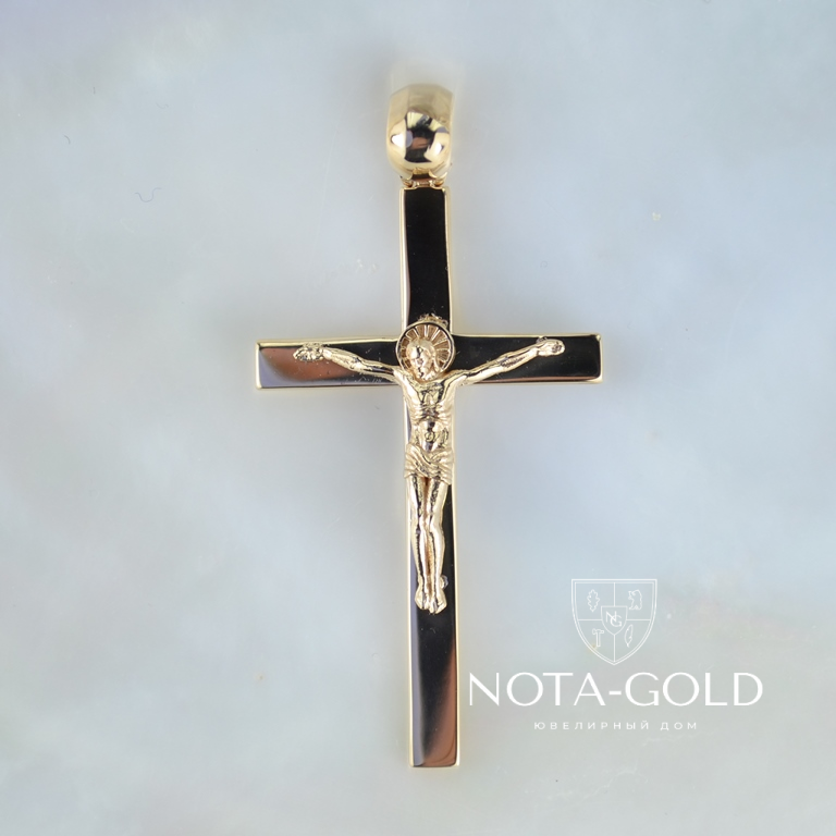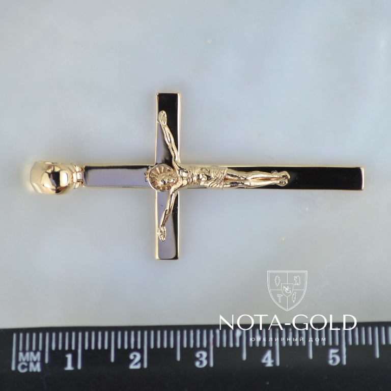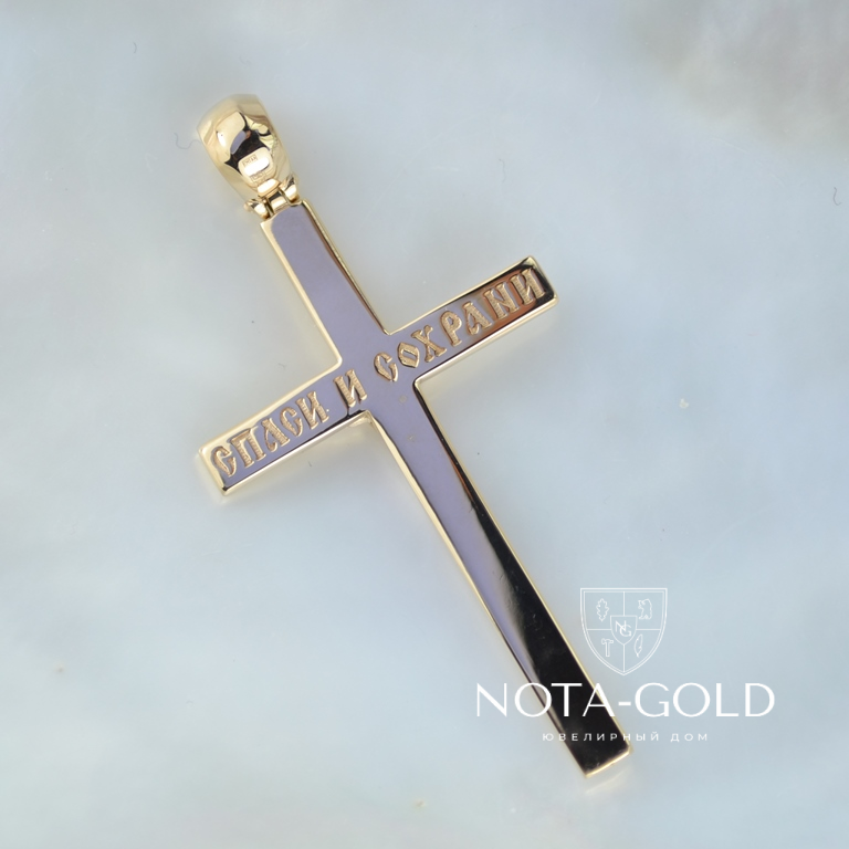Лаконичный классический большой мужской крест Распятие Иисуса Христа и гравировка Спаси и Сохрани из позолоченного серебра (Вес 6 гр.)
