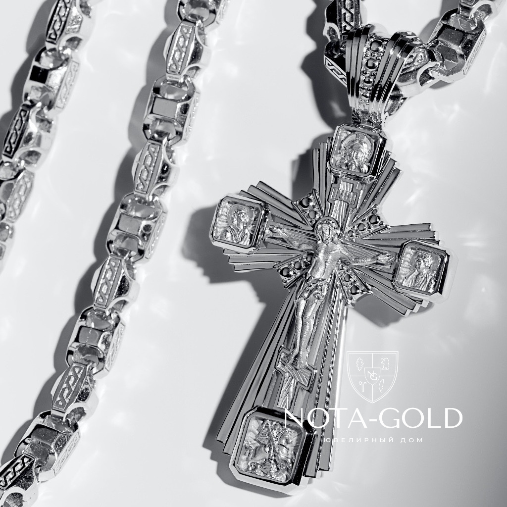 Серебряный крест с Ликами Святых (Вес 17 гр.)