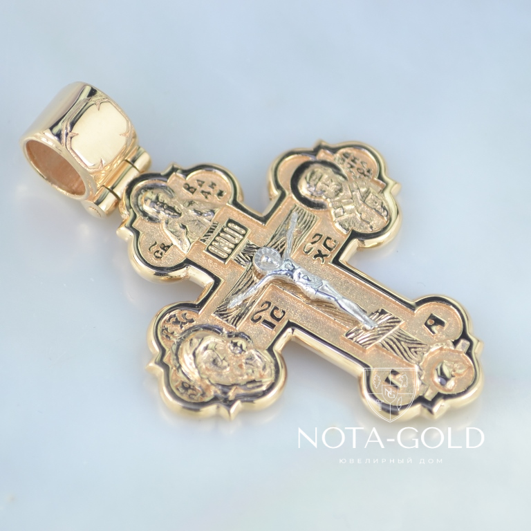 Серебряный позолоченный православный мужской крест с личным ликом святого (Вес: 8 гр.)