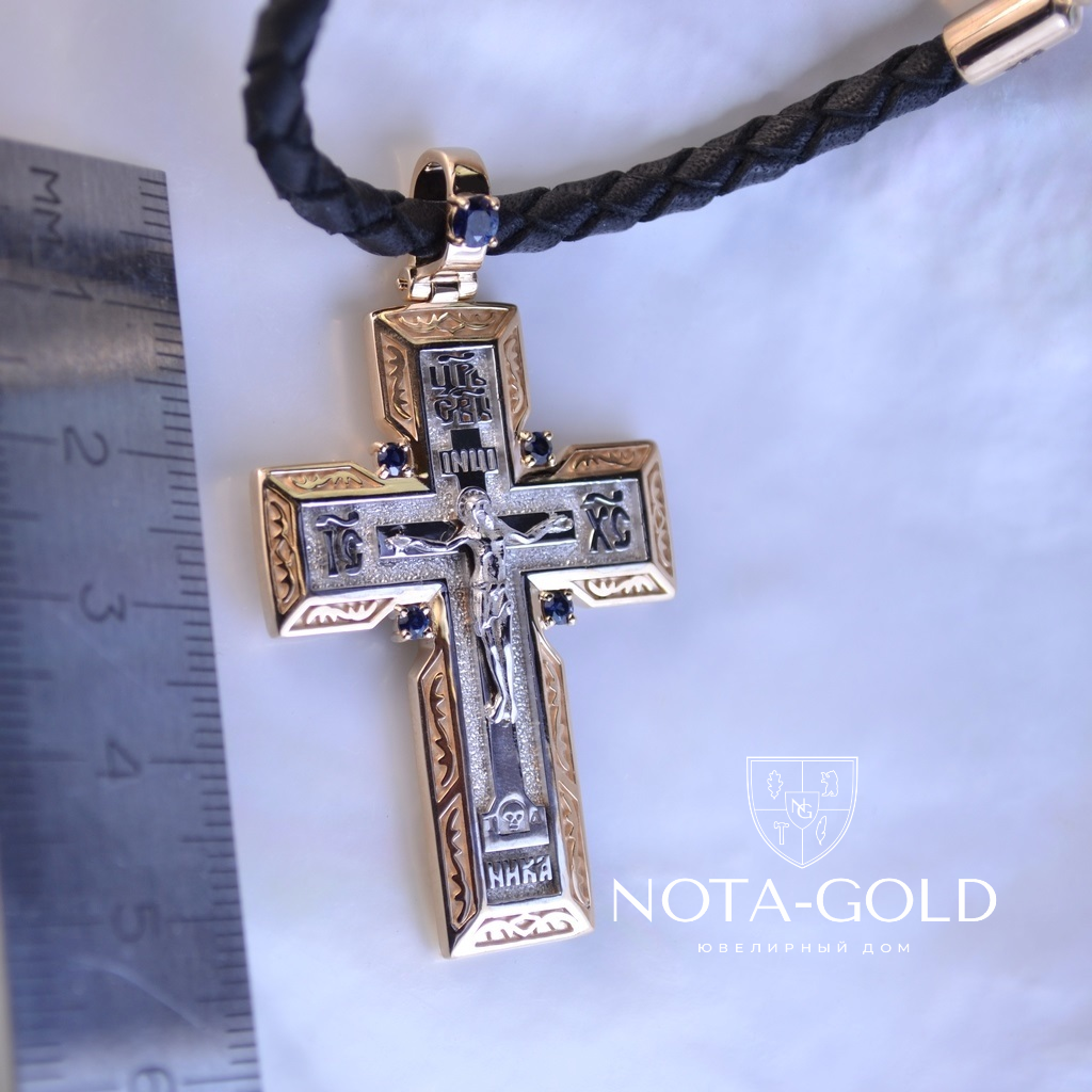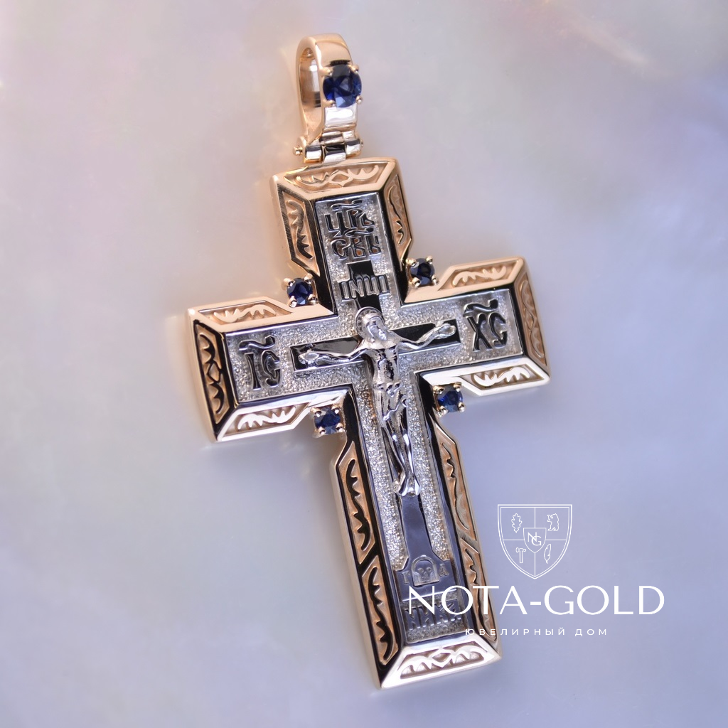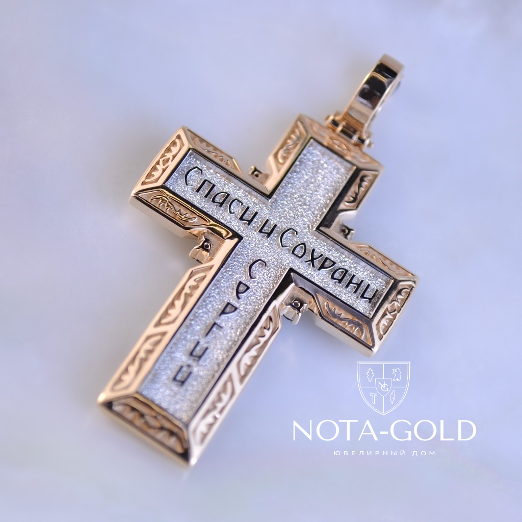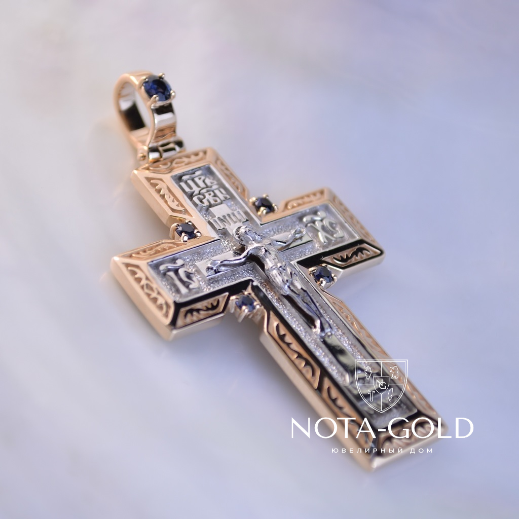 Православный именной крест из позолоченного серебра с фианитами и гравировкой (Вес 15 гр.)