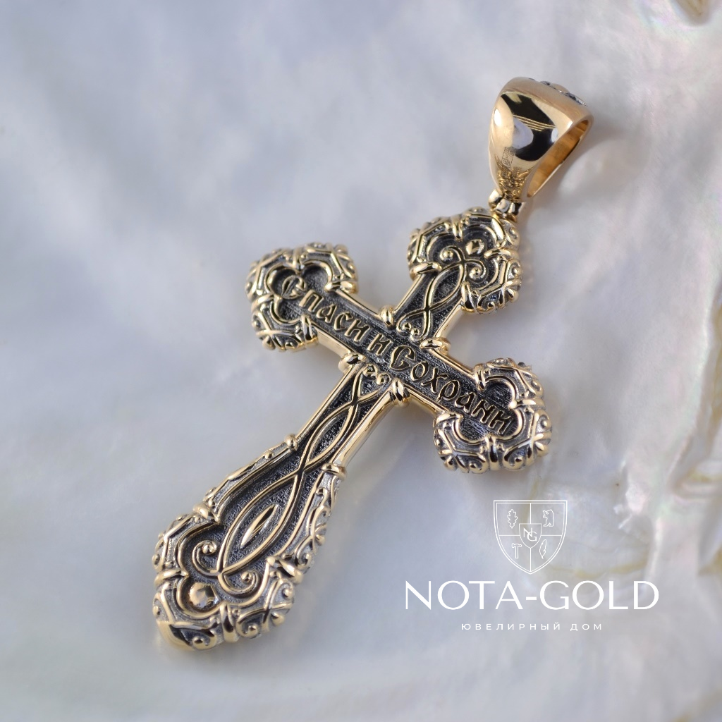 Ажурный крест Спаси и сохрани из серебра с позолотой (Вес 16 гр.)
