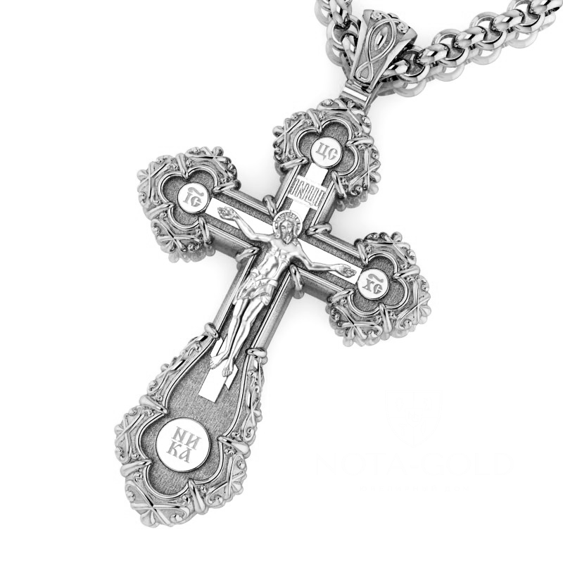 Мужской крест из серебра с ажурными узорами большого размера (Вес: 22 гр.)