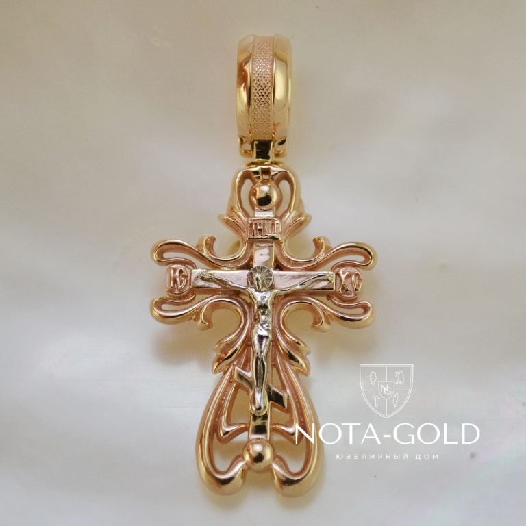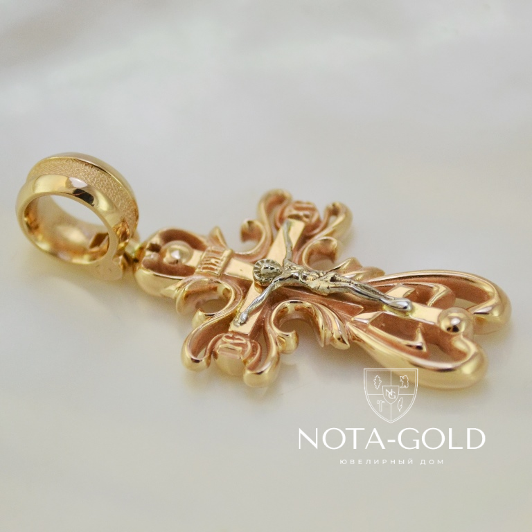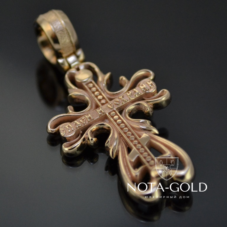 Нательный большой крест из позолоченного серебра на заказ (Вес: 6 гр.)