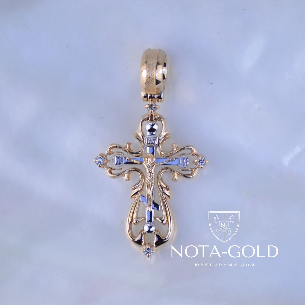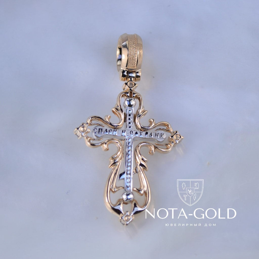 Крест из позолоченного серебра с драгоценными камнями на заказ (Вес: 10 гр.)