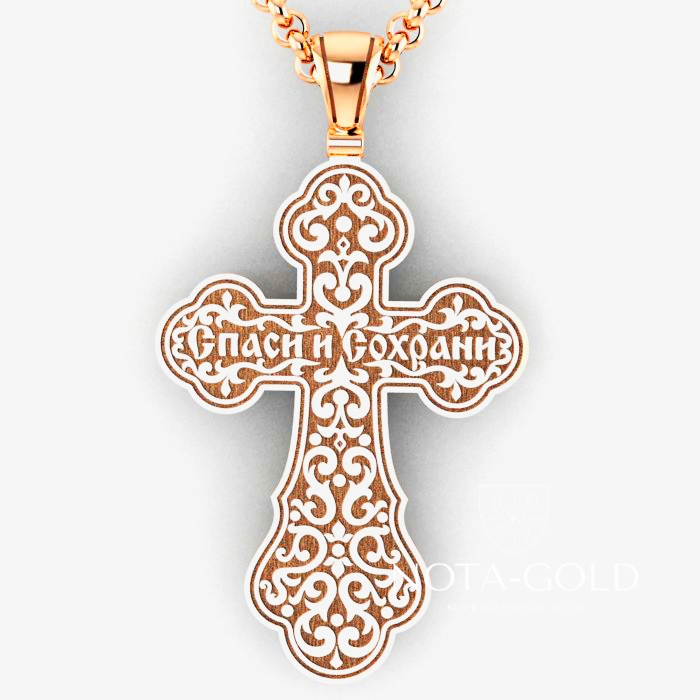 Большой мужской крест из позолоченного серебра с ажурной накладкой без камней (Вес: 15 гр.)