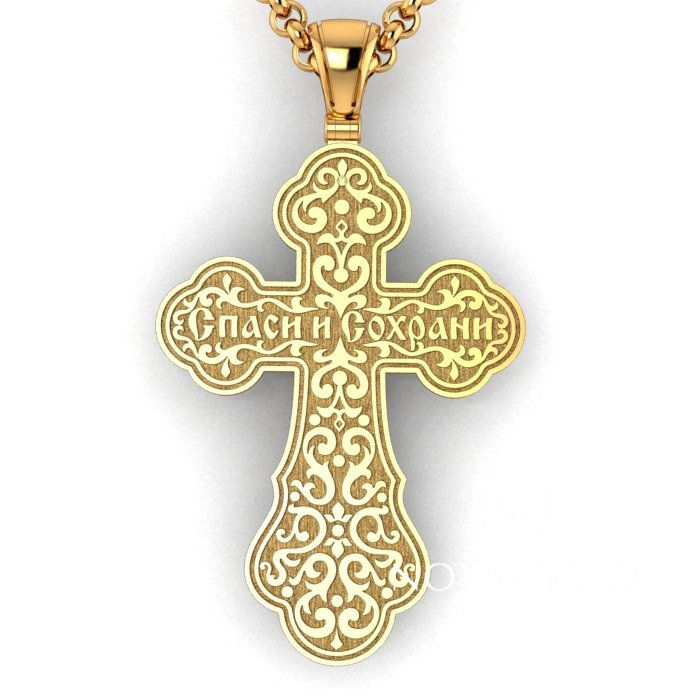 Большой плоский мужской крест из позолоченного серебра с ажурной накладкой и фианитами (Вес: 15 гр.)