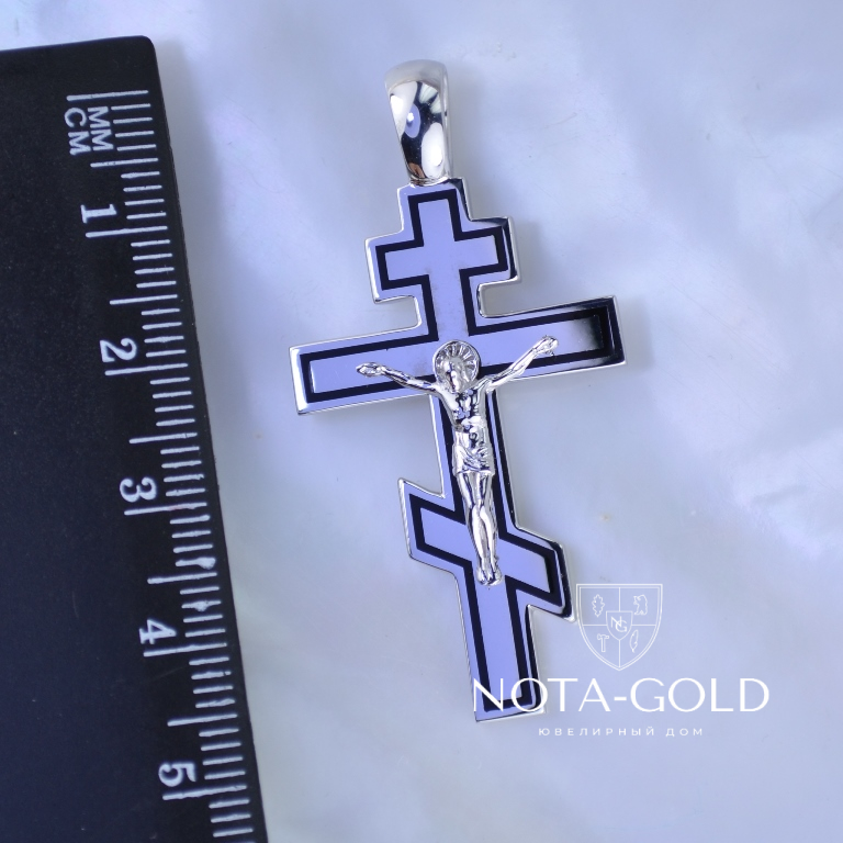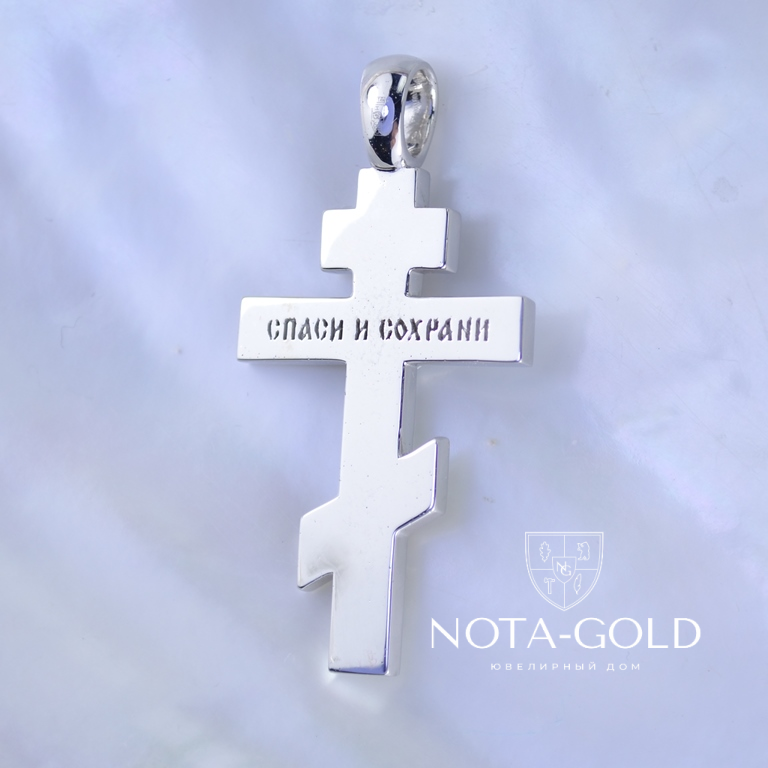 Крест из серебра с чёрной эмалью и гравировкой Спаси и Сохрани (Вес: 9 гр.)
