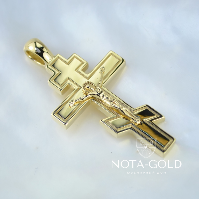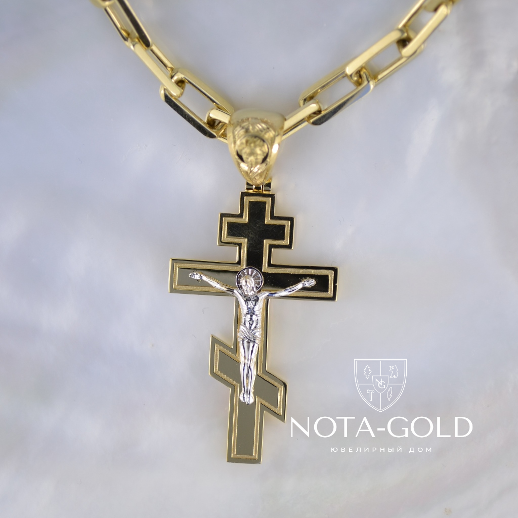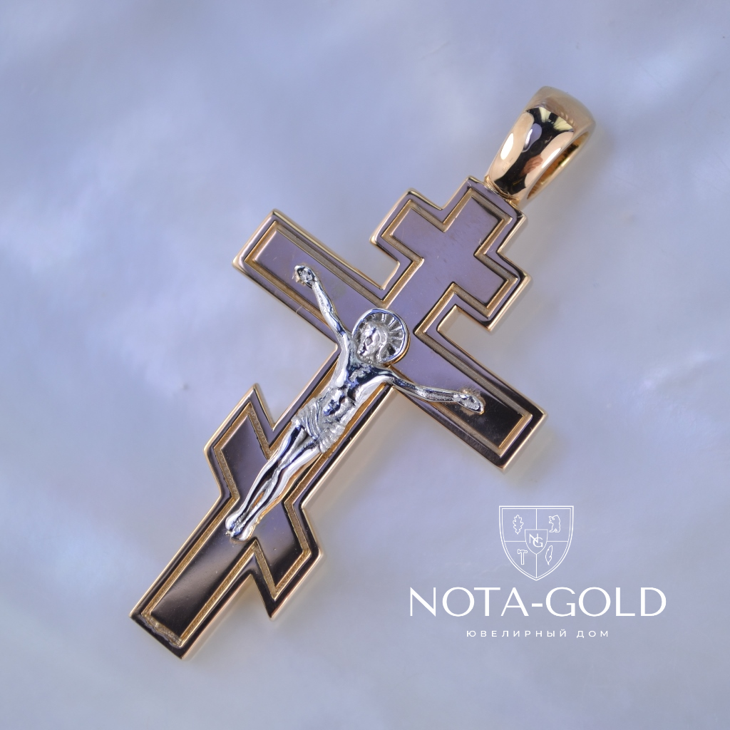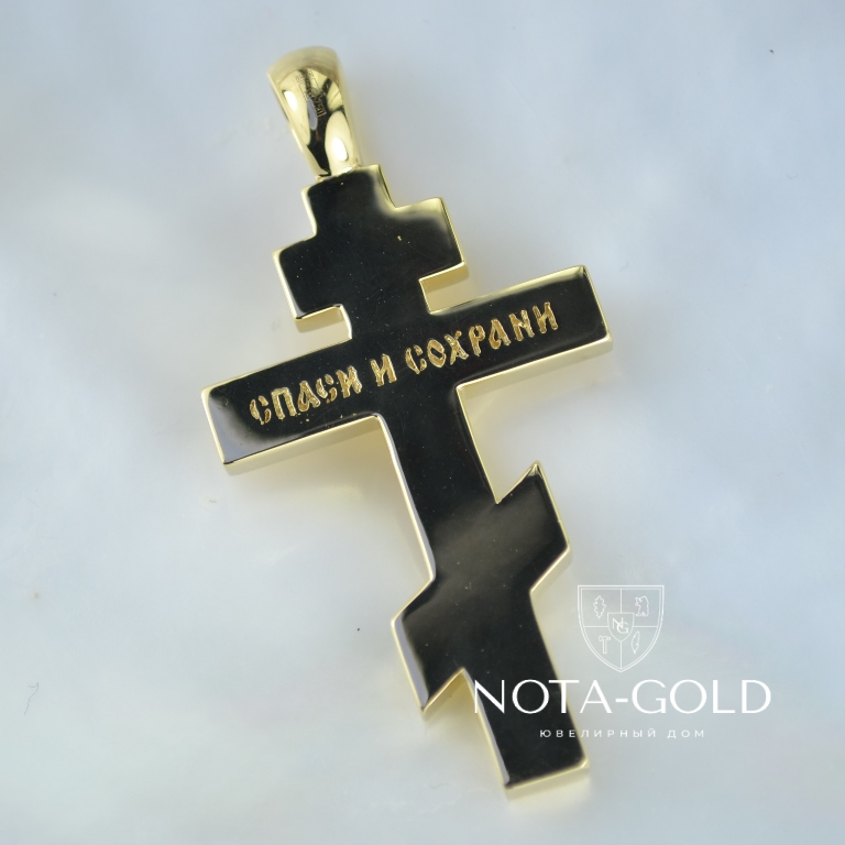 Православный нательный мужской крест из серебра с позолотой и гравировкой Спаси и Сохрани (Вес 12 гр.)