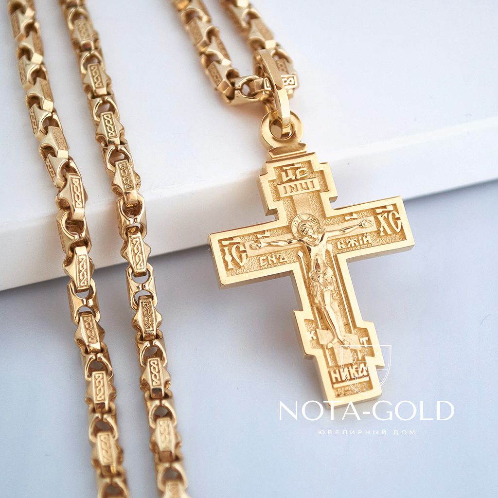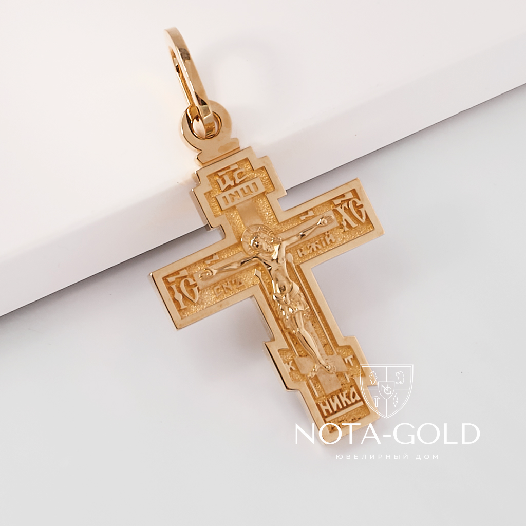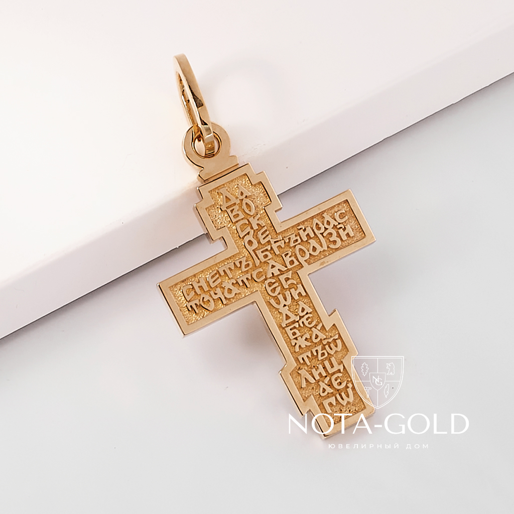 Крупный мужской позолоченный серебряный крестик с молитвой на обороте (Вес 9 гр.)