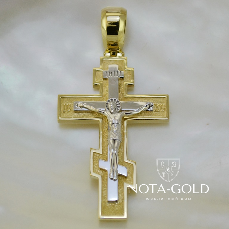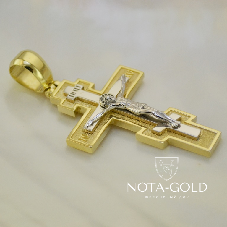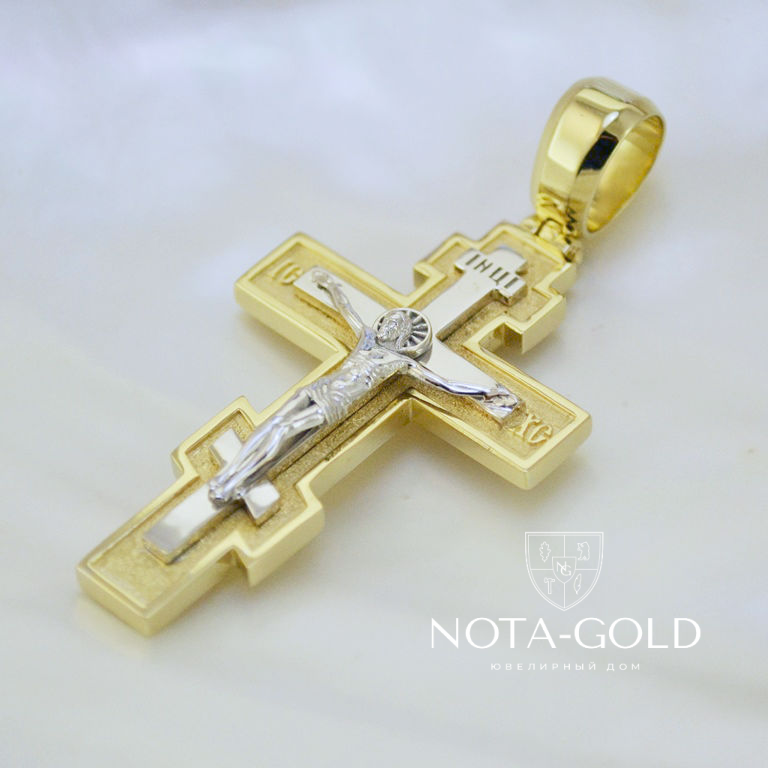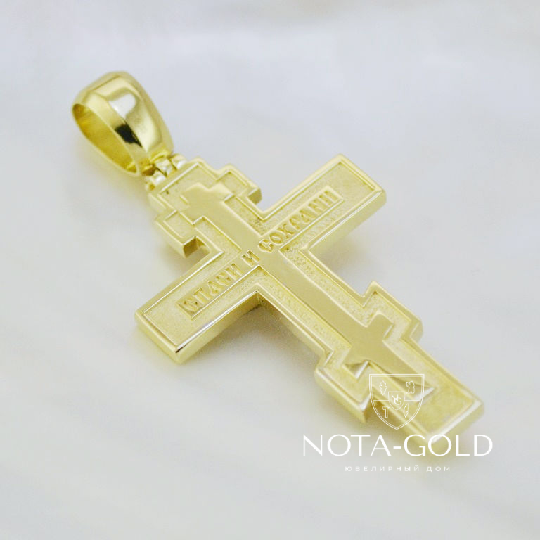 Православный нательный большой крест из позолоченного серебра эксклюзивного дизайна (Вес: 16 гр.)