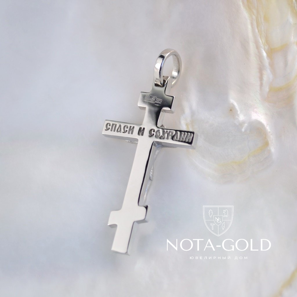Нательный крест из серебра с распятием и гравировкой Спаси и сохрани (Вес 3 гр.)