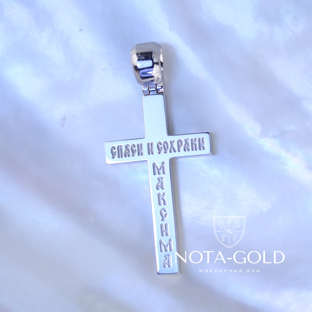 Именной крест из серебра с гравировкой "Спаси и сохрани" без распятия (Вес: 6 гр.)