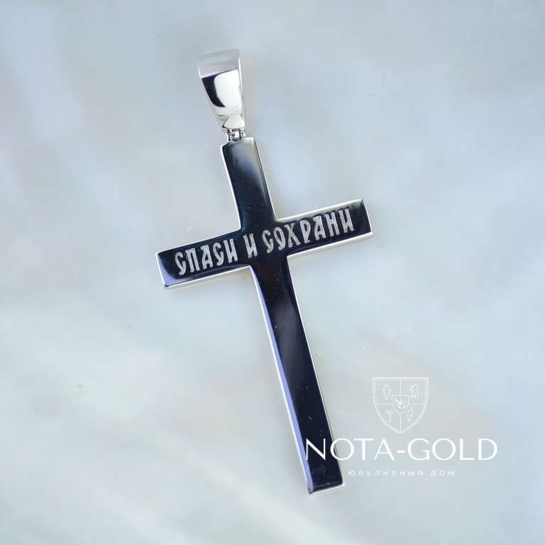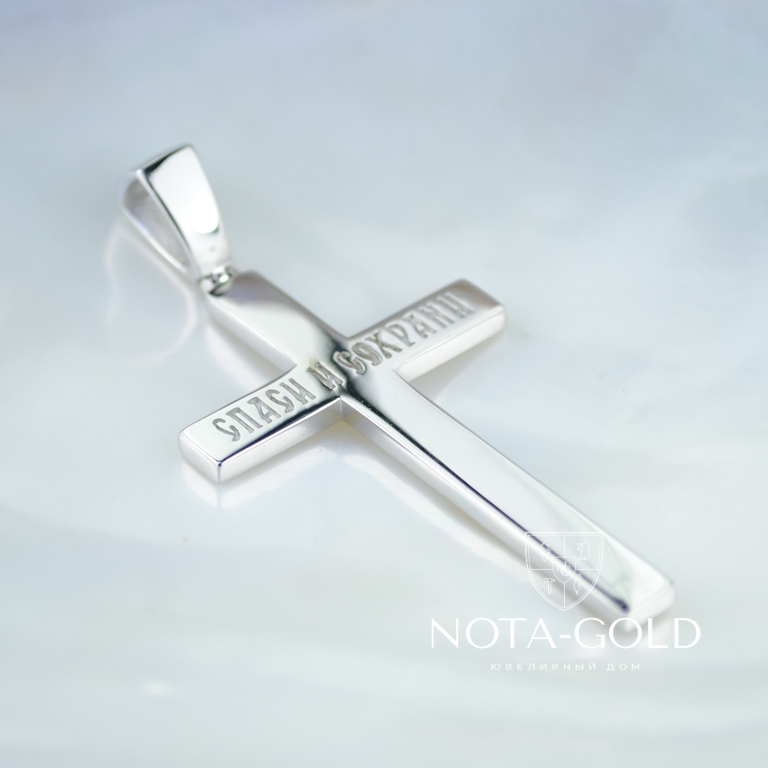 Крест православный без распятия из серебра с гравировкой спаси и сохрани (Вес 7 гр.)