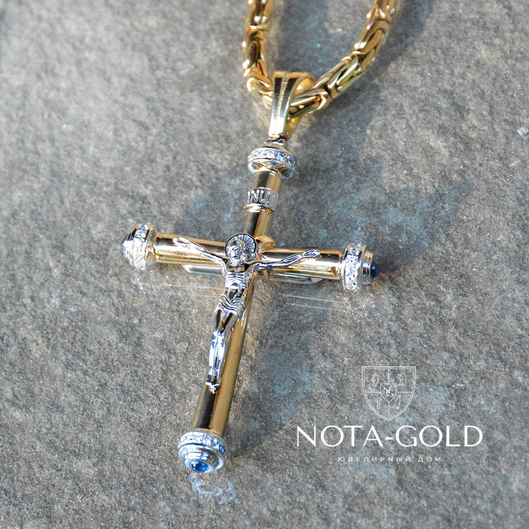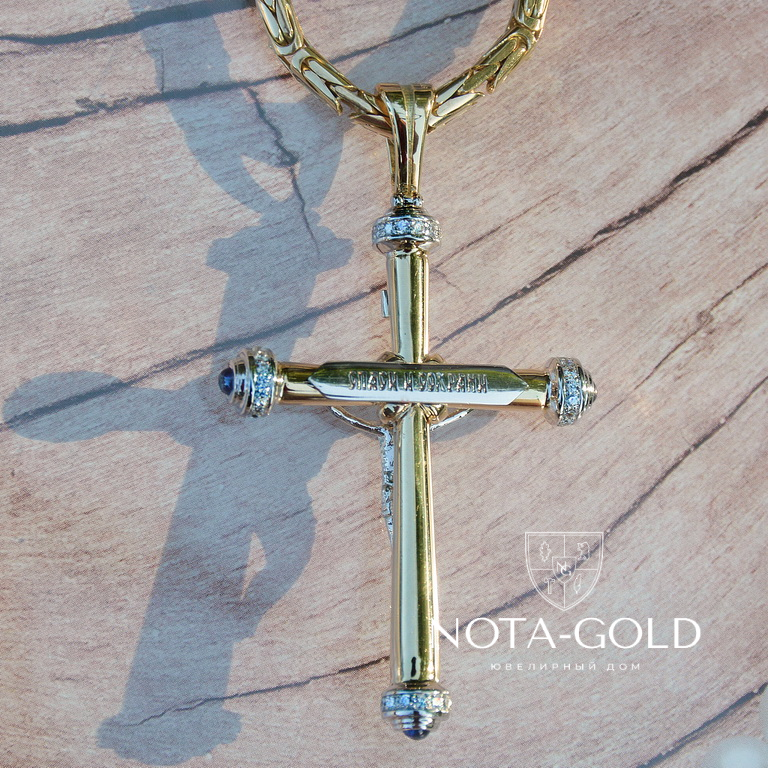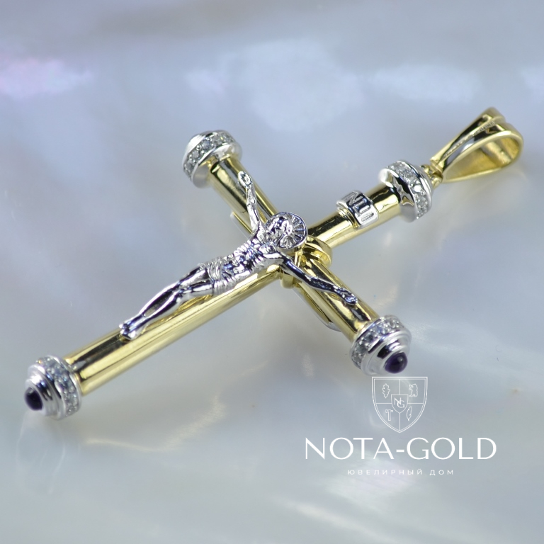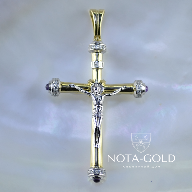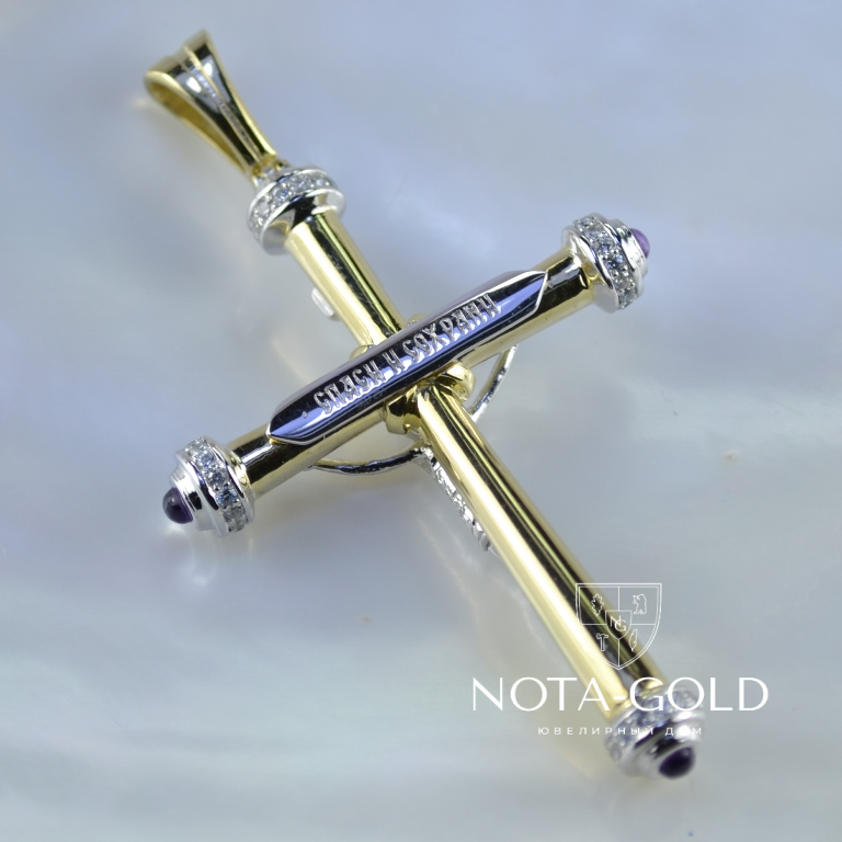 Крупный мужской крест из позолоченного серебра с цветными фианитами (Вес 10 гр.)