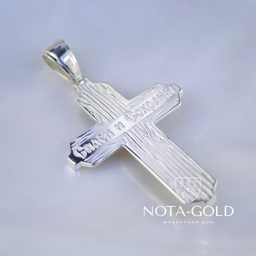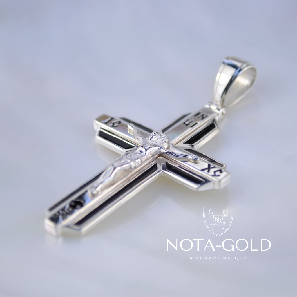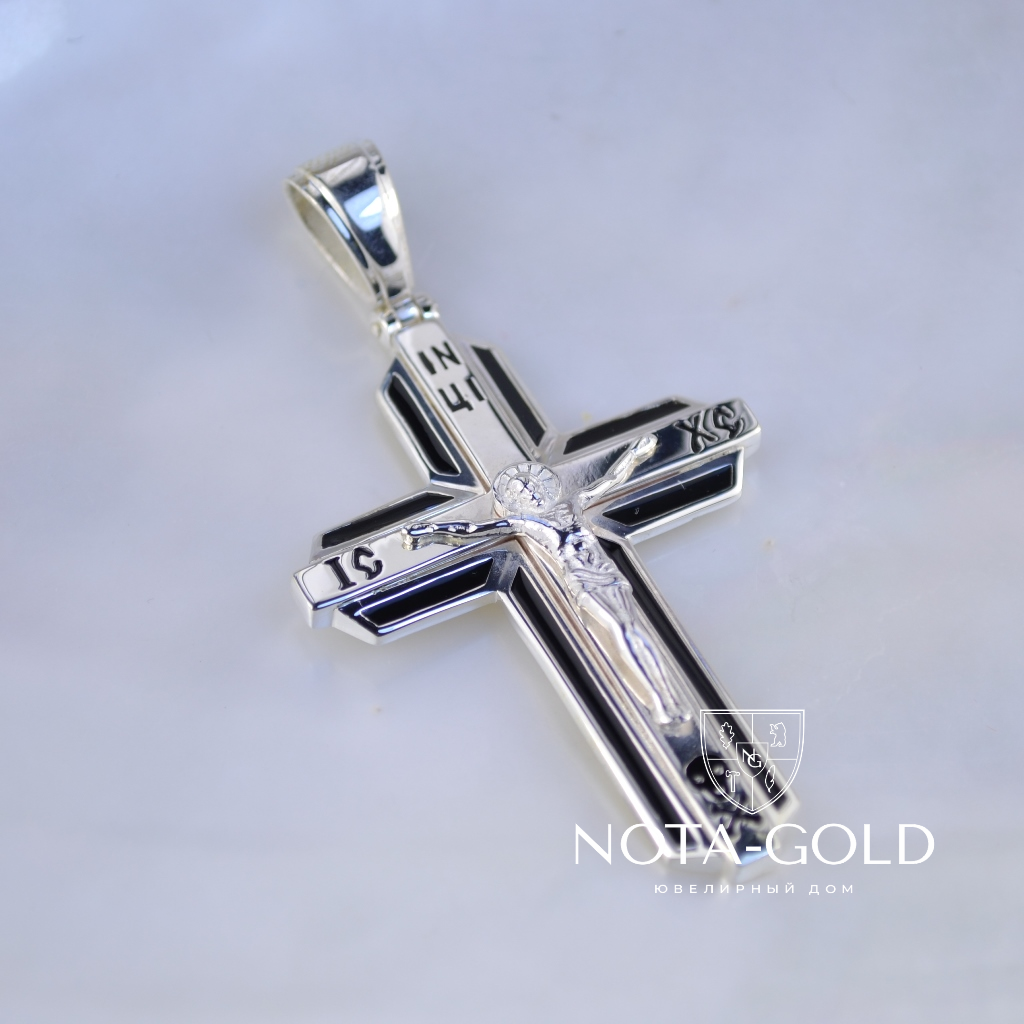 Православный нательный крест из серебра с чёрной эмалью и гравировкой (Вес 9 гр.)