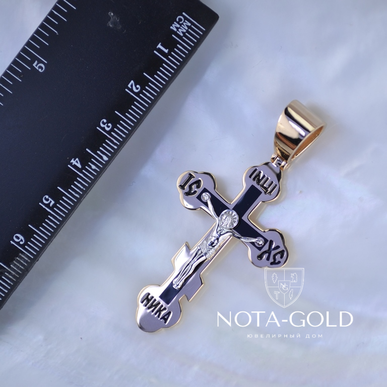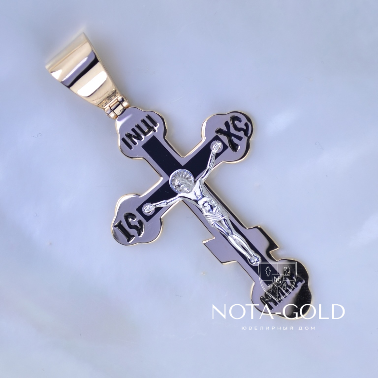 Мужской позолоченный серебряный православный крестик с чёрной эмалью (Вес 13 гр.)