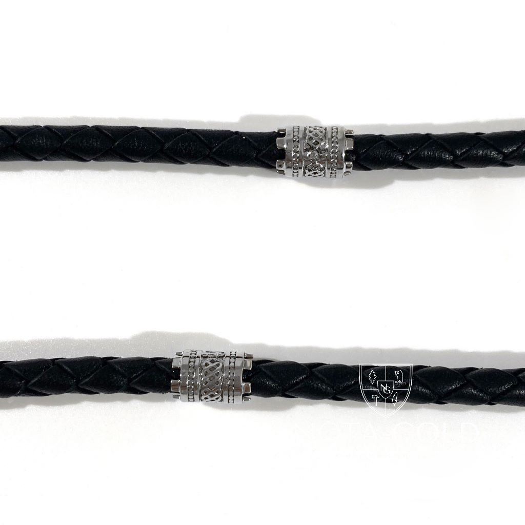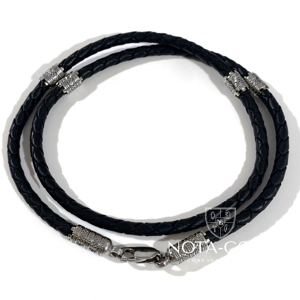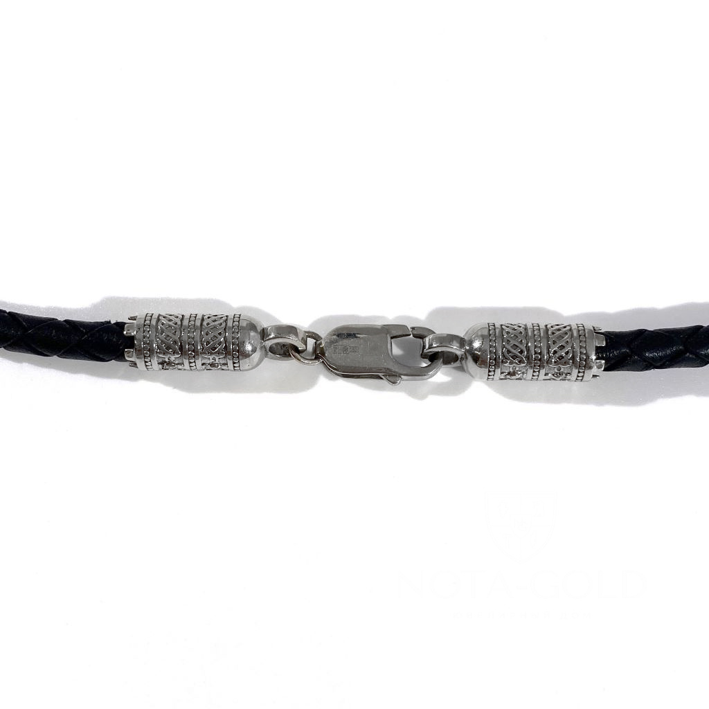 Кожаный шнурок-гайтан с замком и вставками из белого золота (Вес: 18,1 гр.)