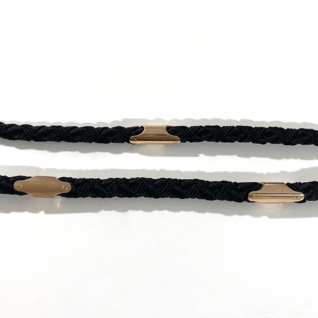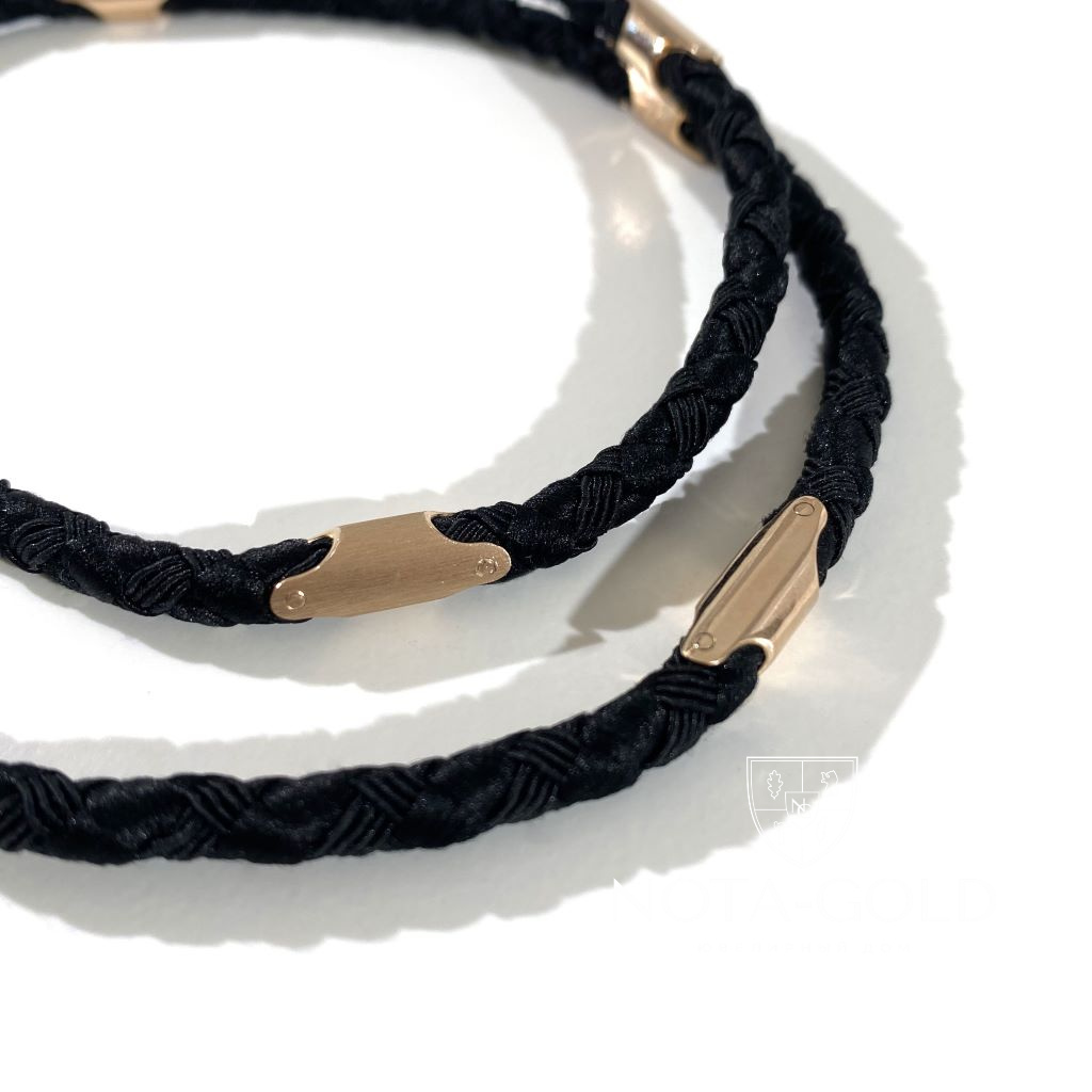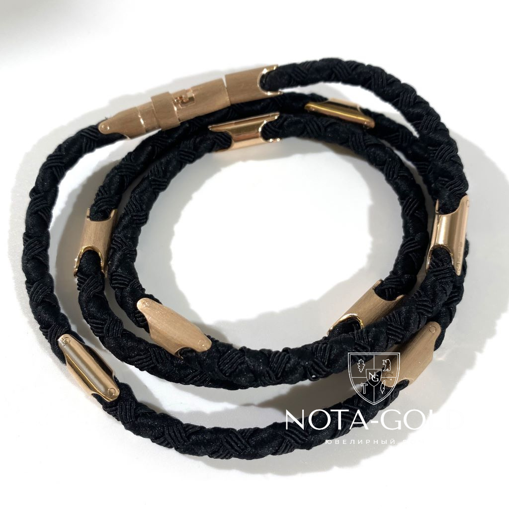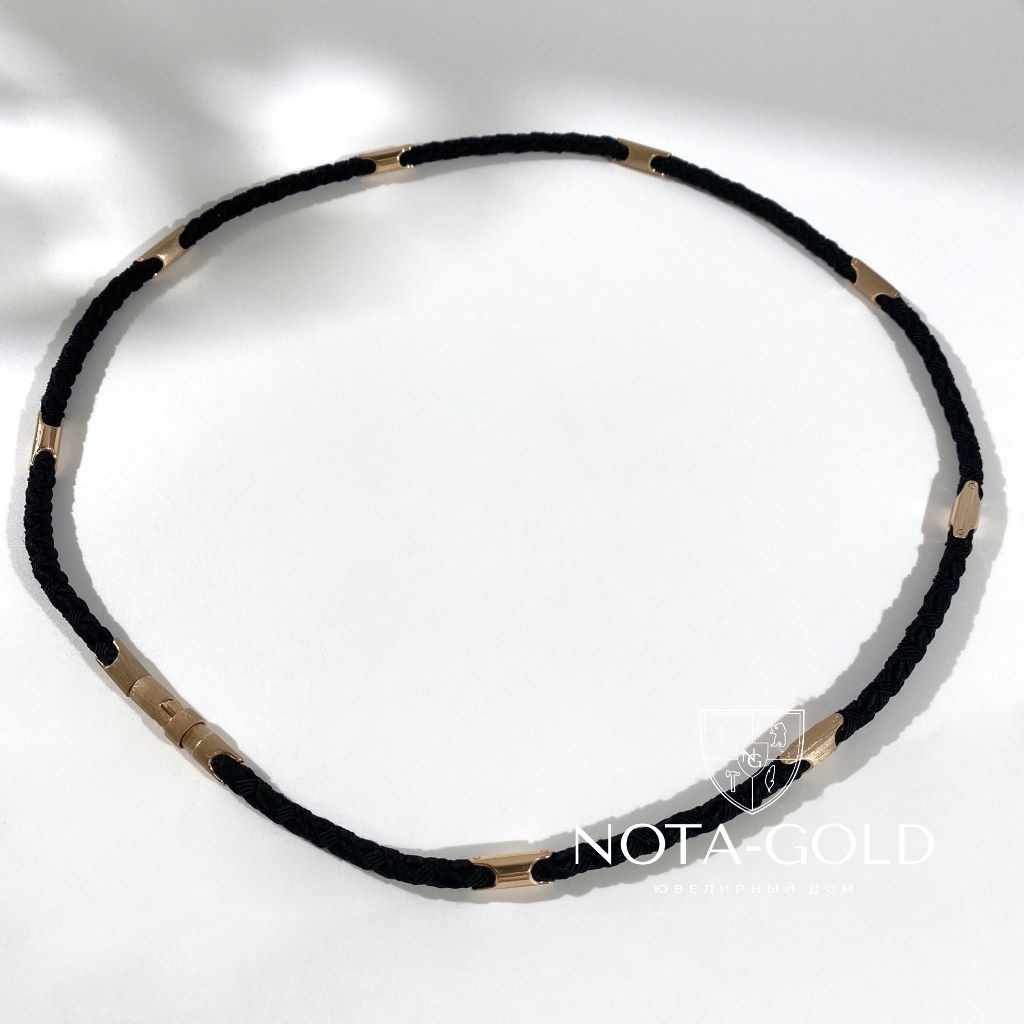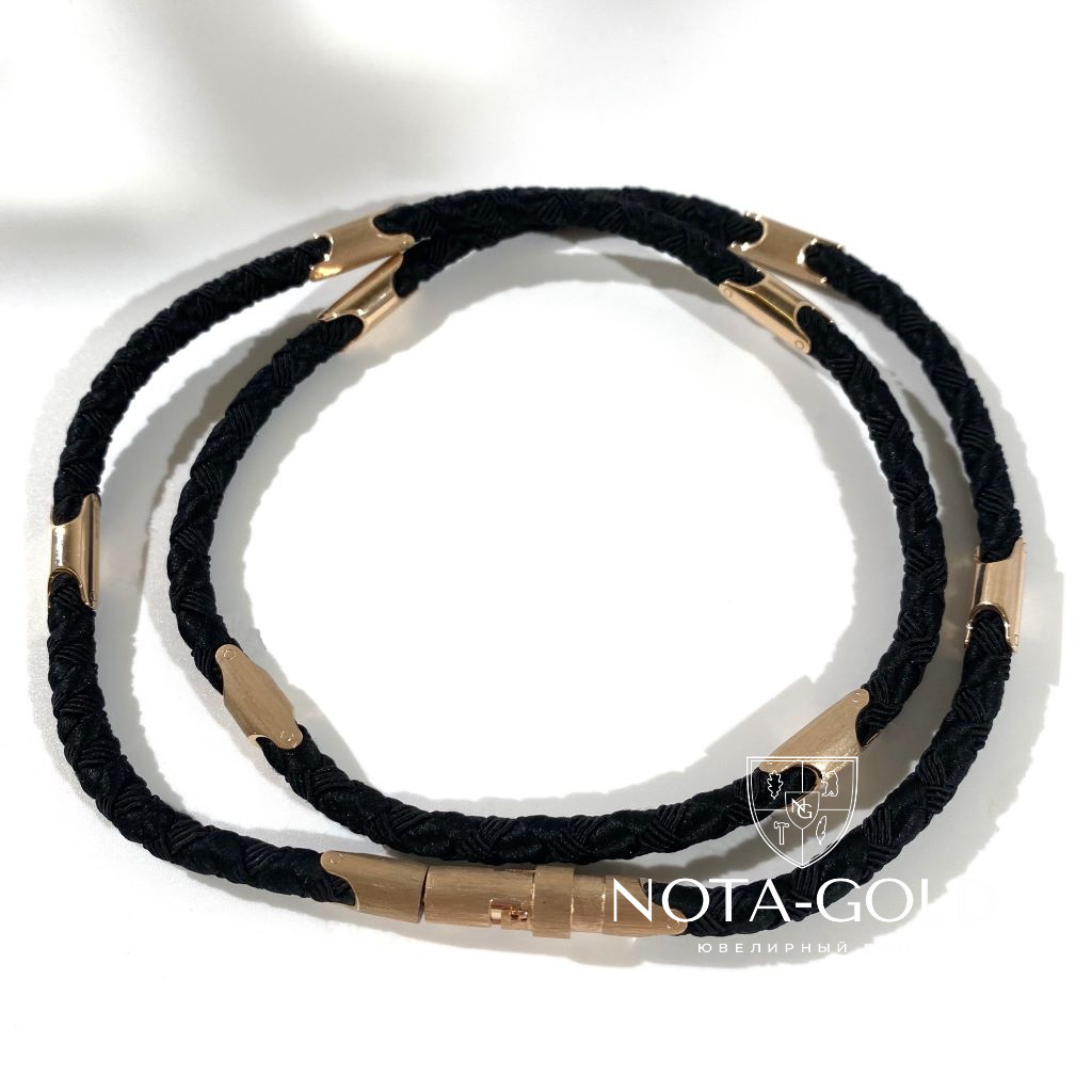 Тканевый шнурок с замком и вставками из красного золота (Вес: 30,9 гр.)