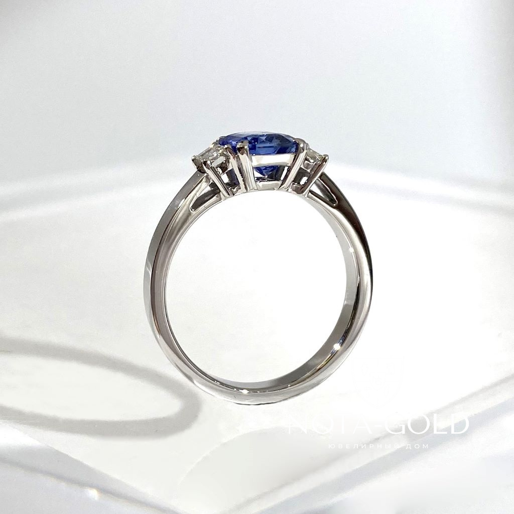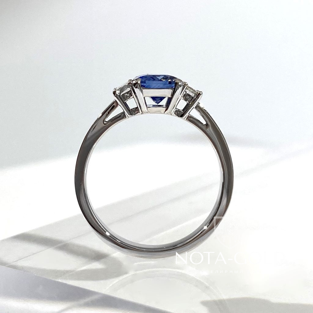 Женское кольцо из белого золота с сапфиром и бриллиантами (Вес 4,4 гр.)