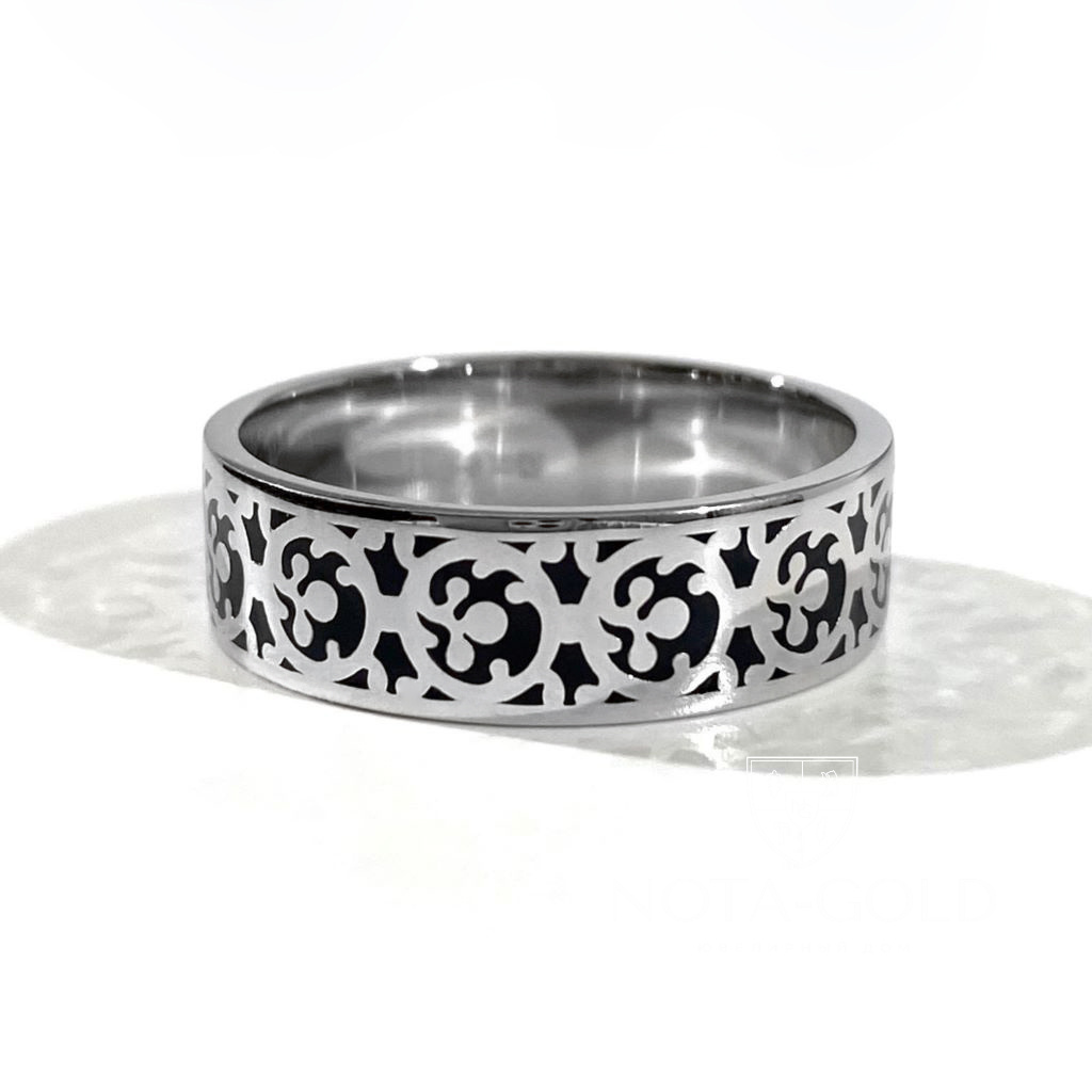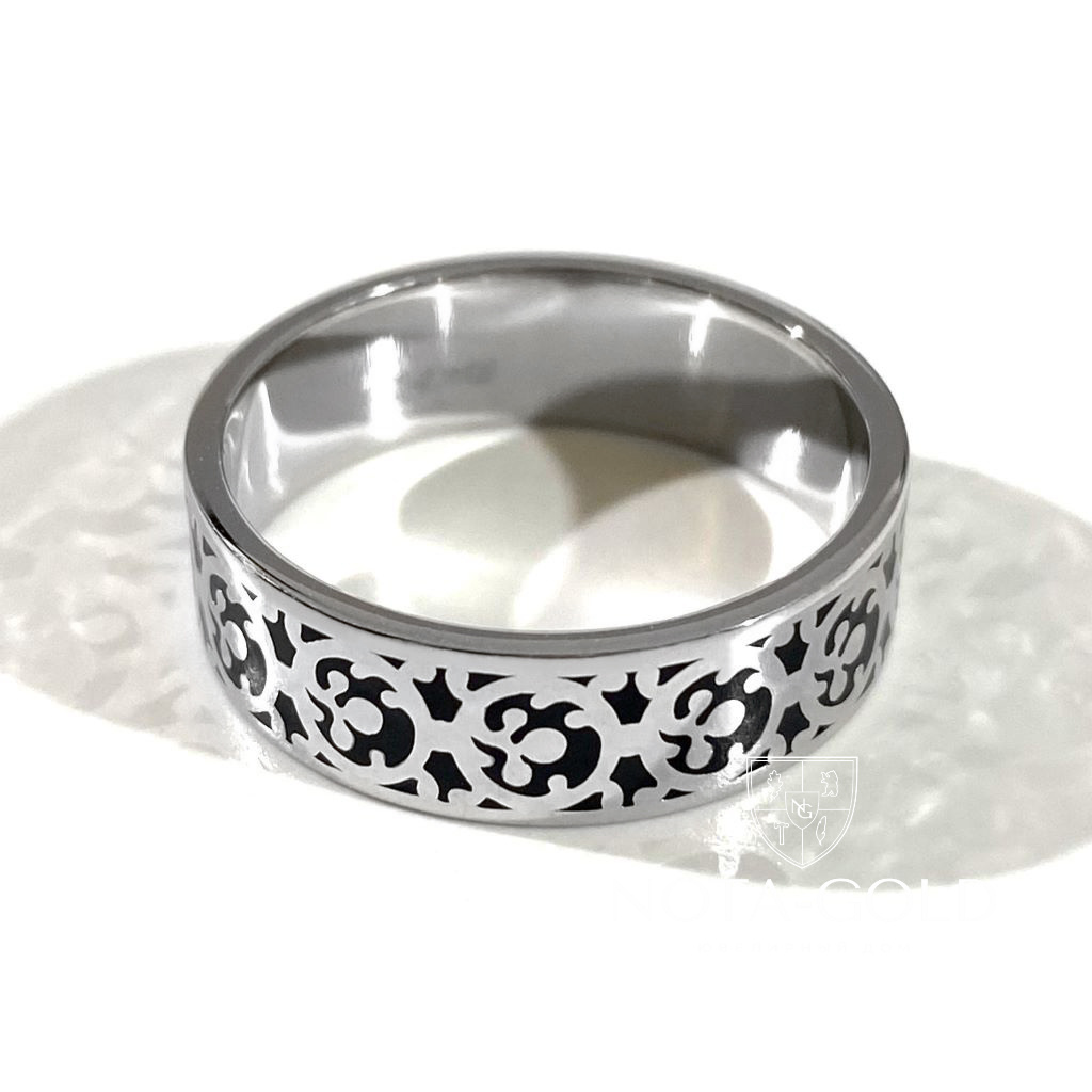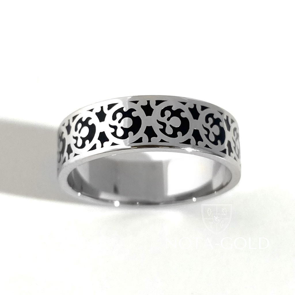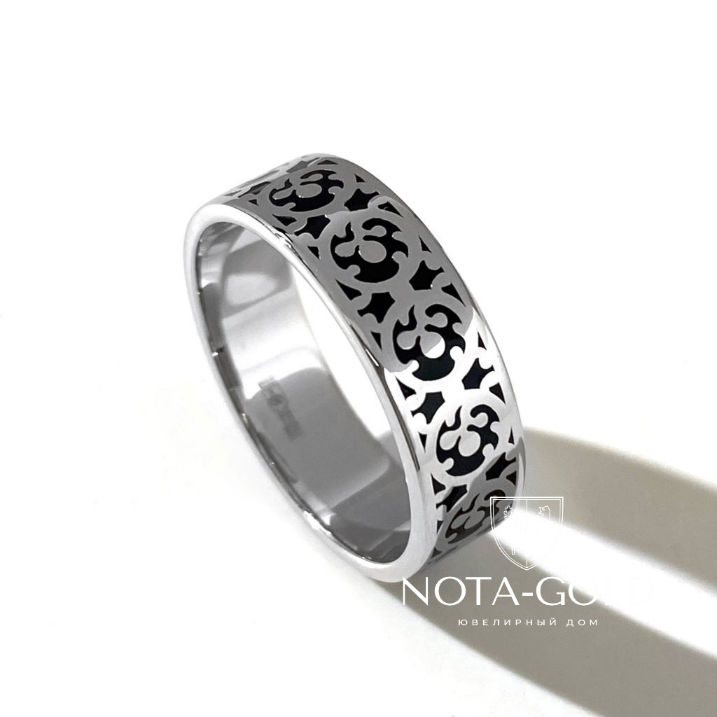 Кольцо из белого золота с орнаментом и эмалью (Вес 6,9 гр.)
