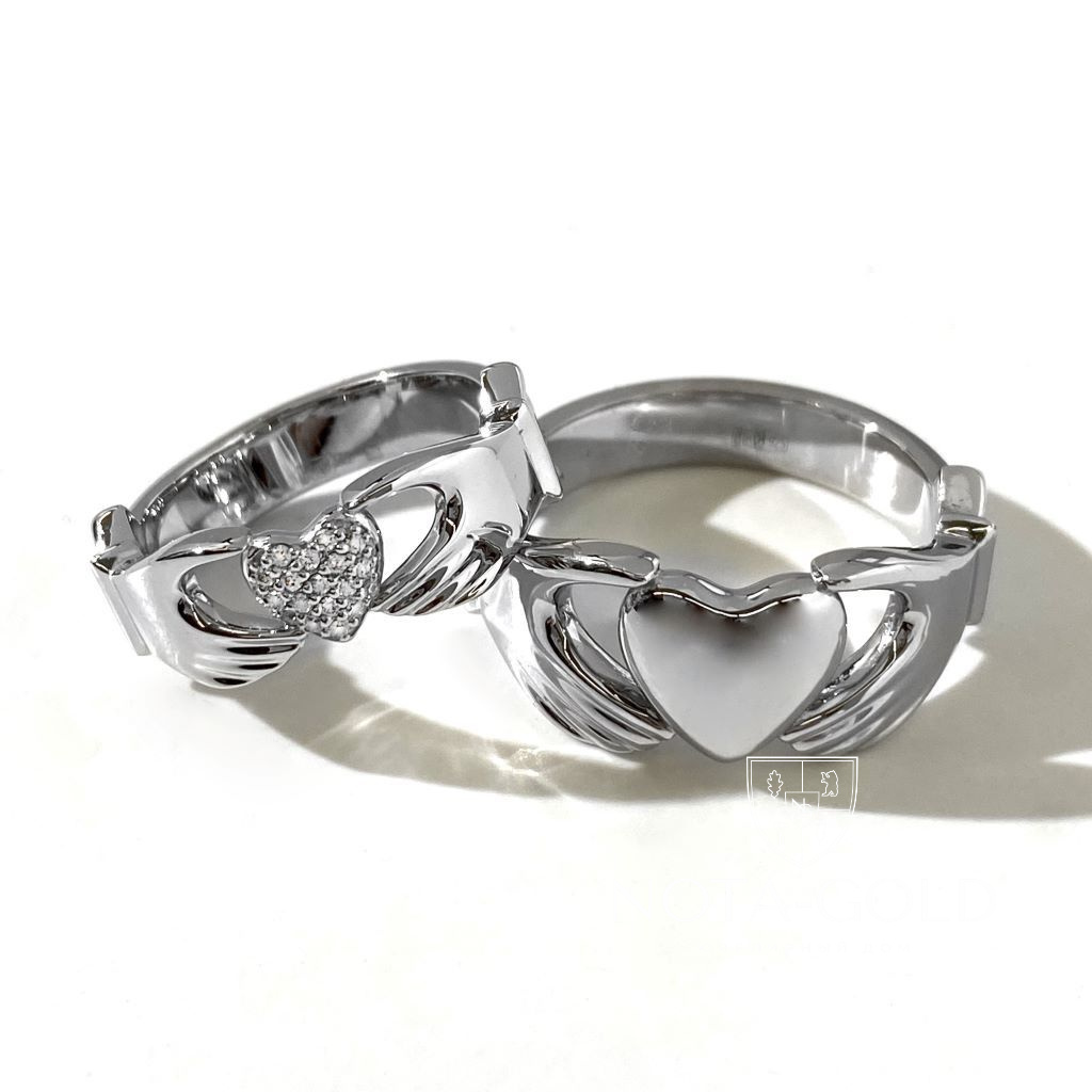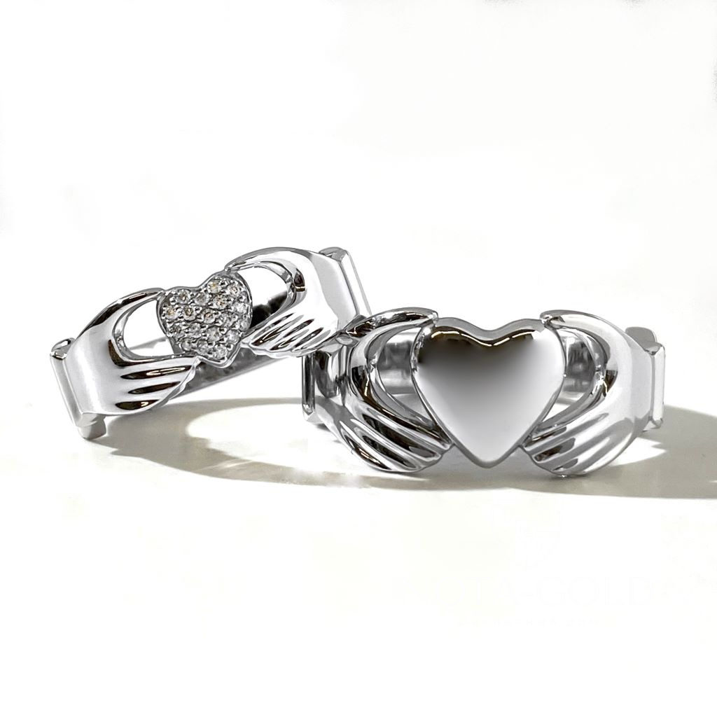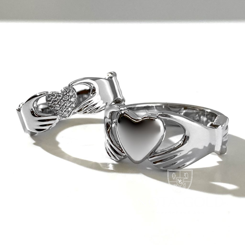 Обручальные кладдахские кольца из белого золота с бриллиантами (Вес пары 17,3 гр.)