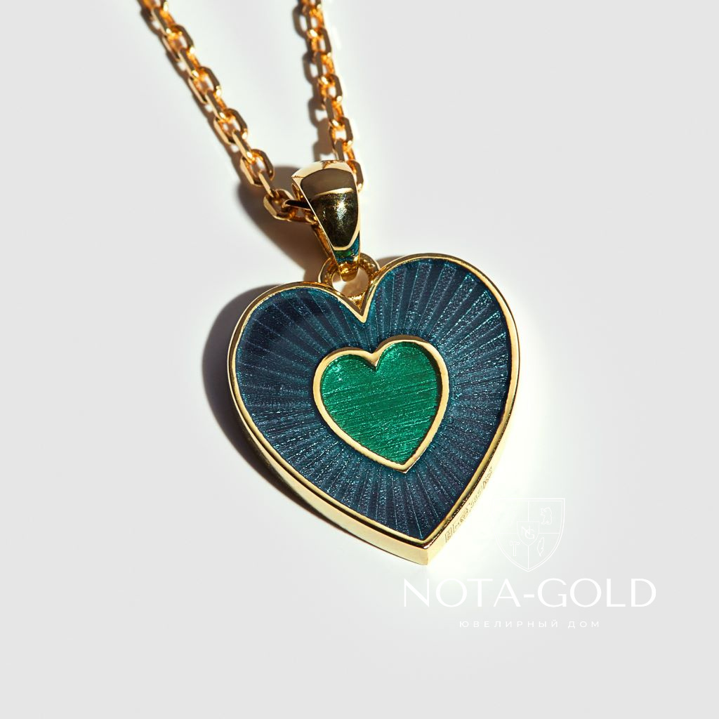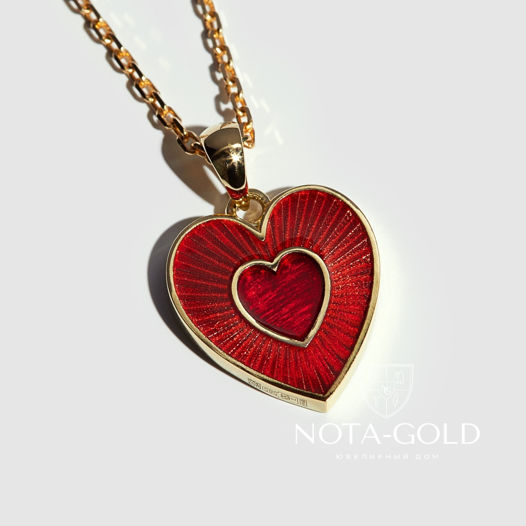 Золотая подвеска Сердце большое с эмалью (Вес 2,3 гр.)