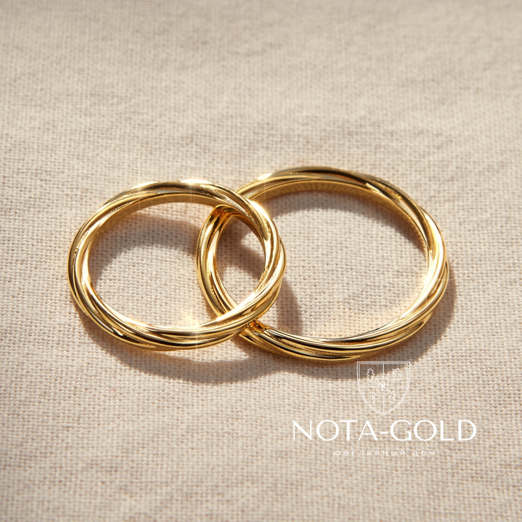 Легкие плетеные обручальные кольца из желтого золота (Вес пары 5,9 гр.)