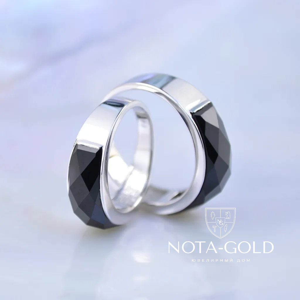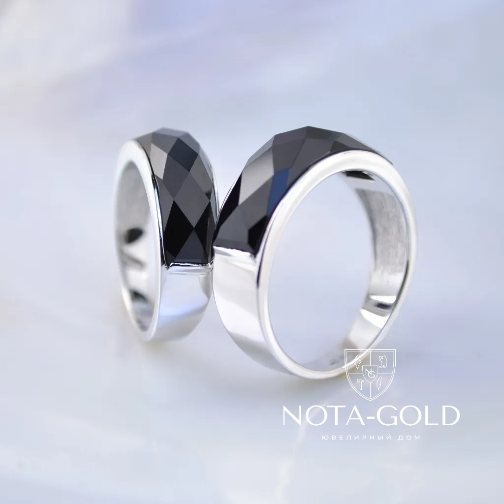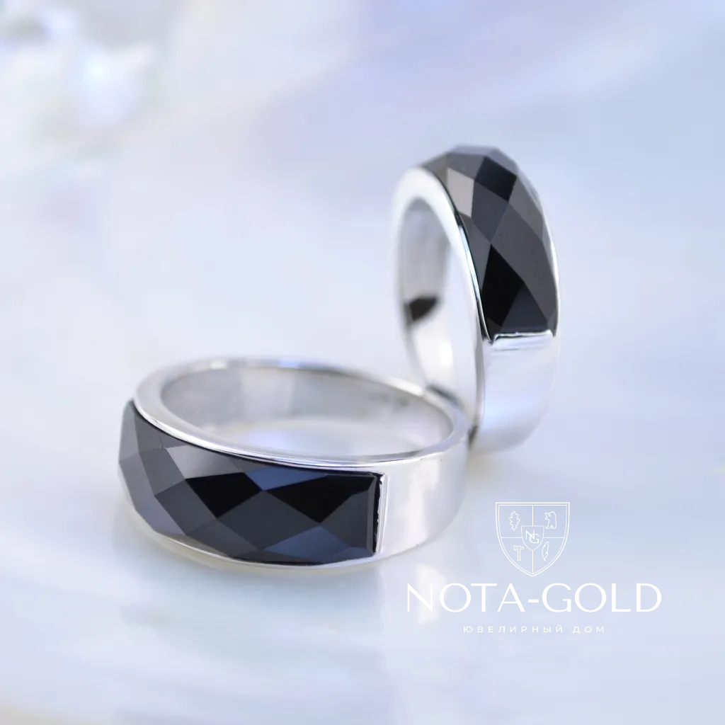 Обручальные кольца из белого золота с гранёным агатом и гравировкой (Вес 13 гр.)
