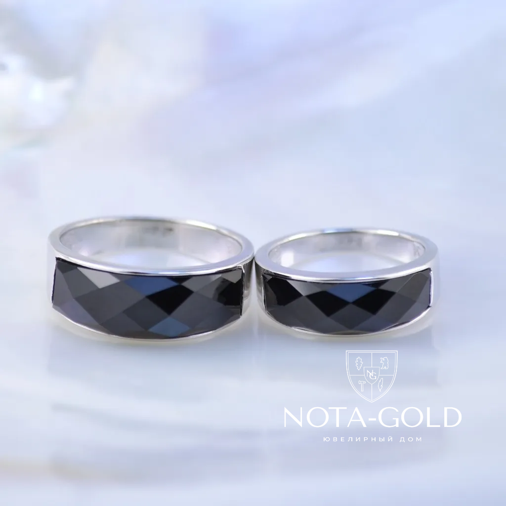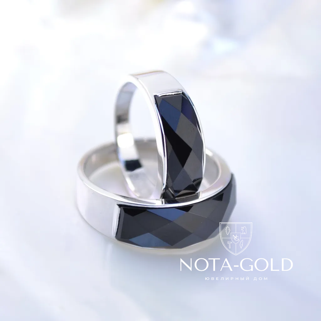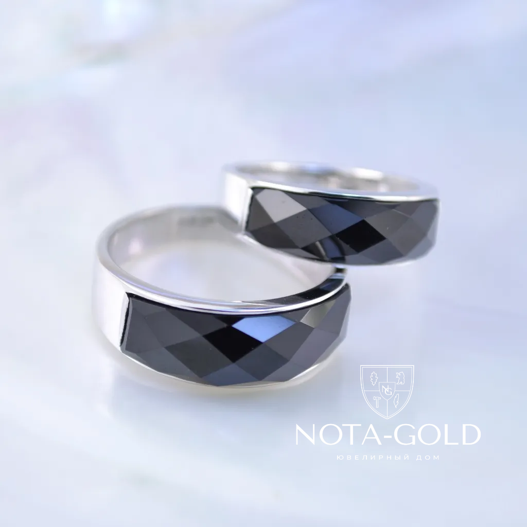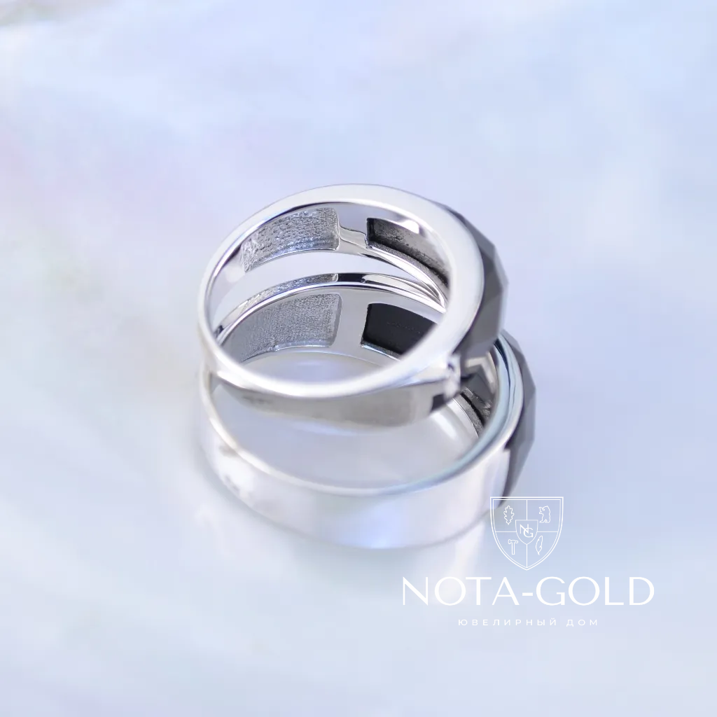 Обручальные кольца из белого золота с гранёным агатом и гравировкой (Вес 13 гр.)