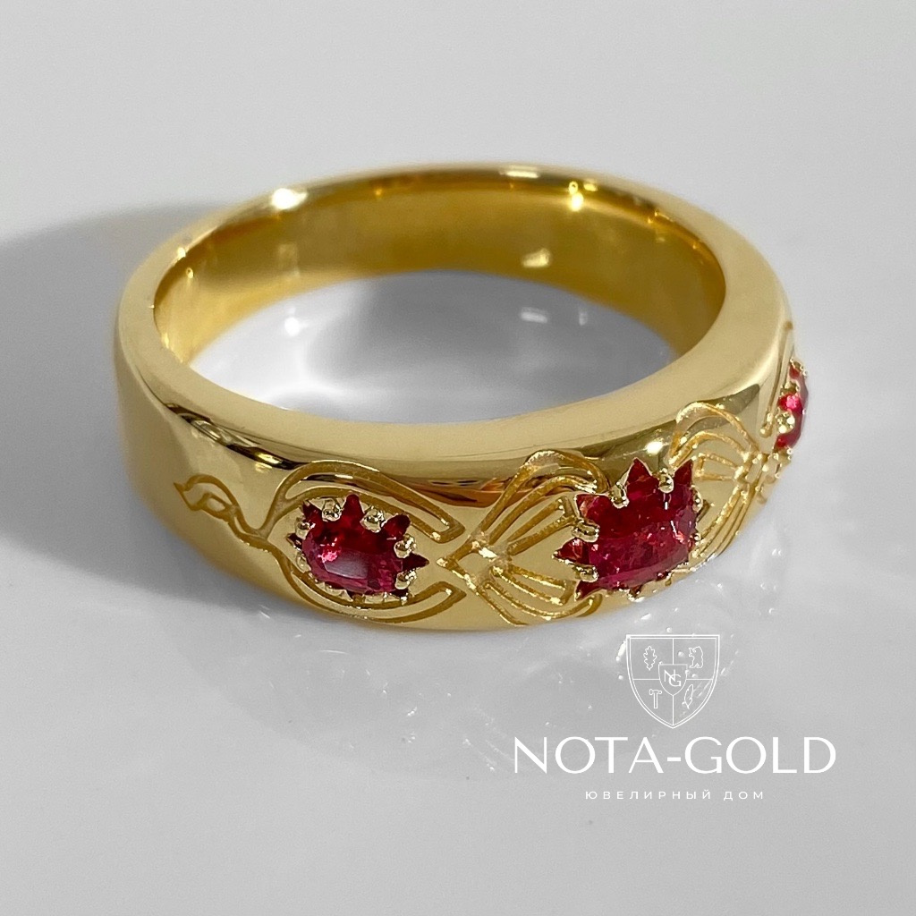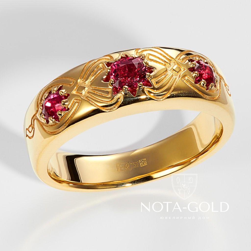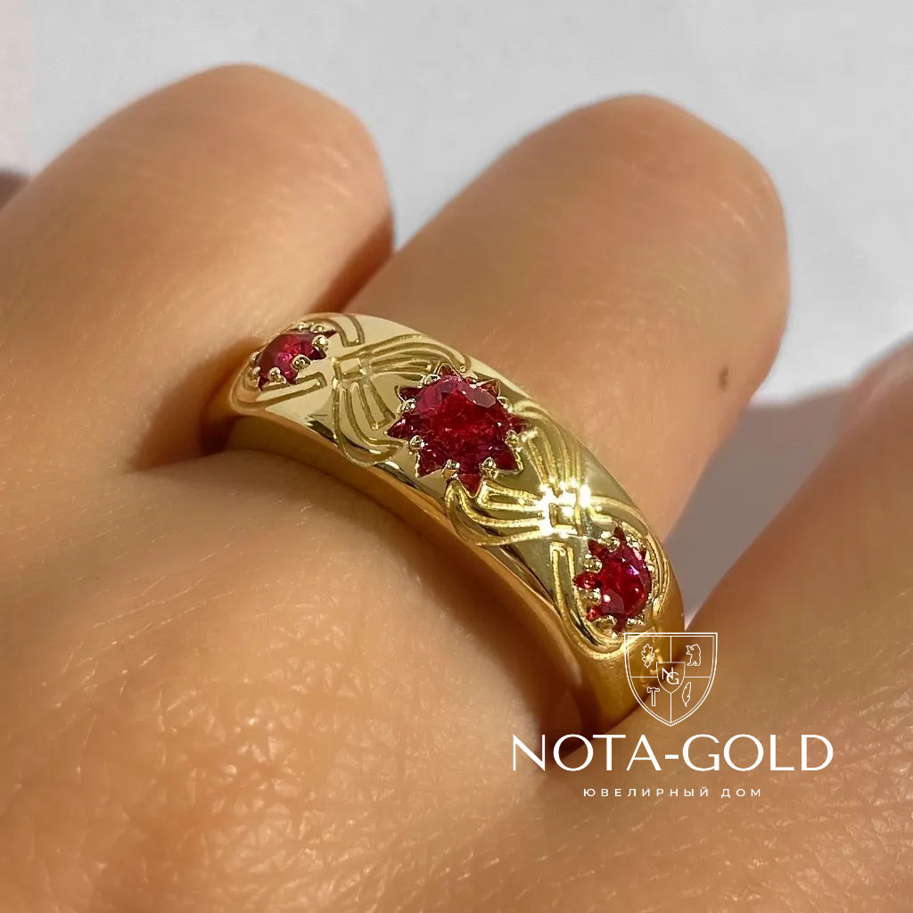 Женское кольцо из желтого золота с тремя рубинами (Вес 19,3 гр.)