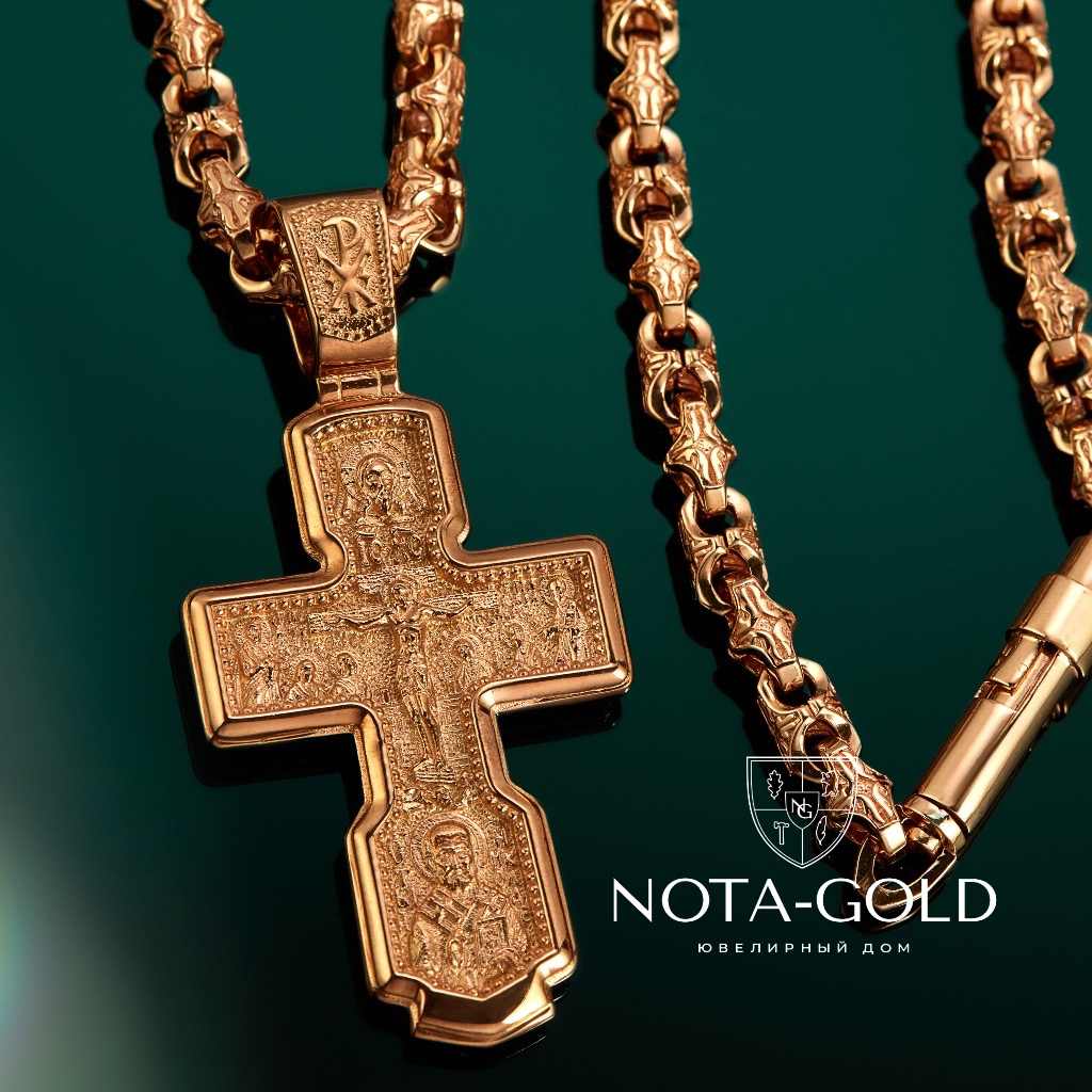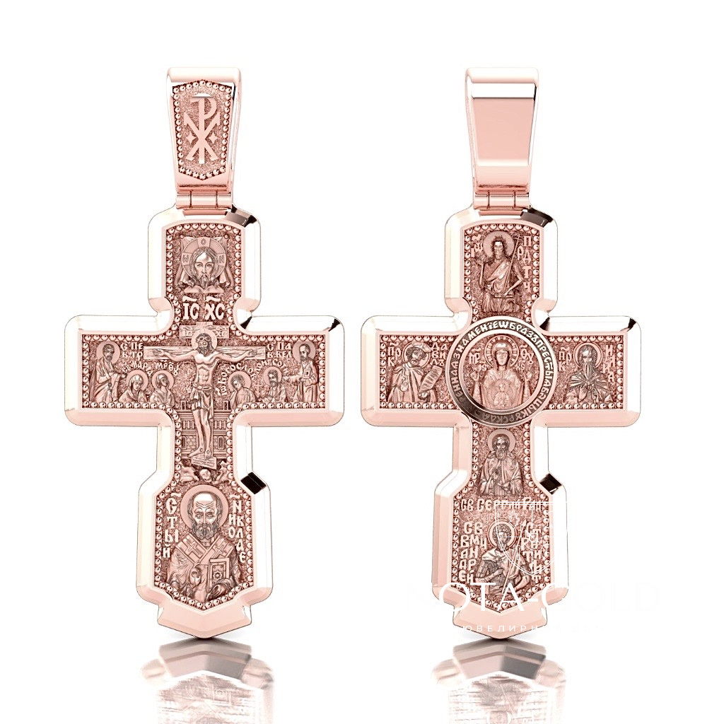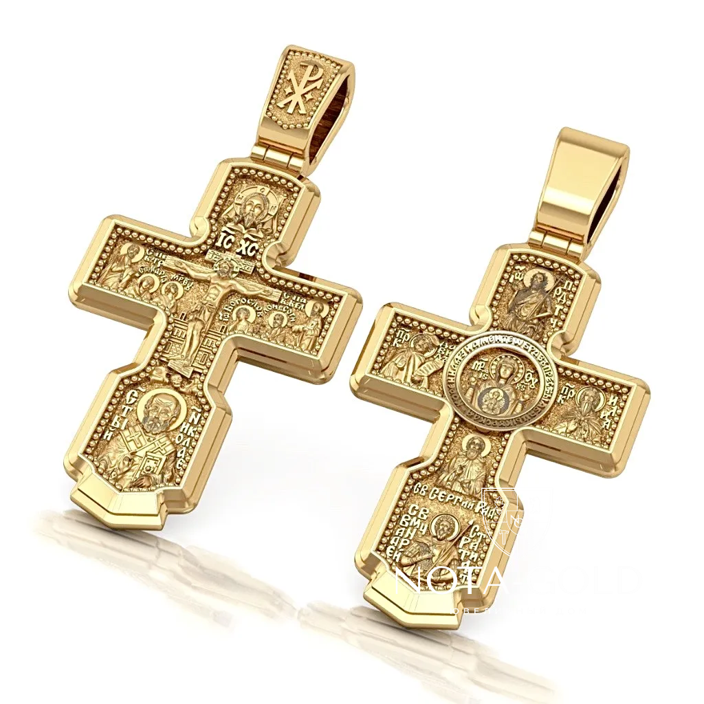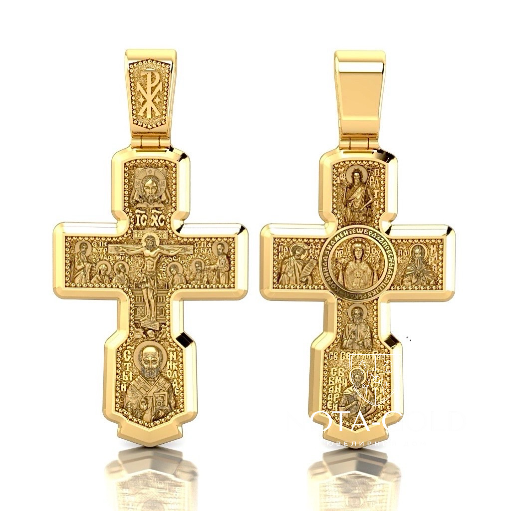 Нательный золотой православный крест с ликами святых (Вес 18 гр.)
