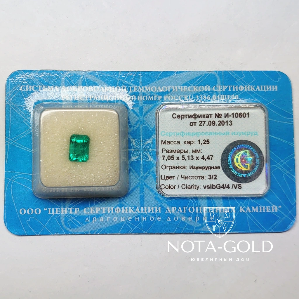 Сертифицированный изумруд огранки изумруд 1,25 ct размером 7,05 х 5,13 х 4,47 чистота 3/2 цвет vslbG4/4 /VS