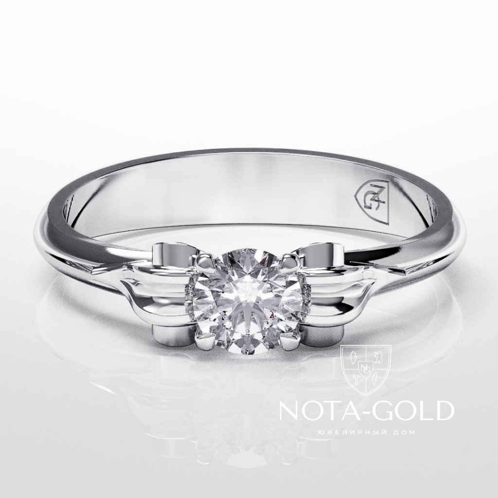 Помолвочное кольцо с синтетическим бриллиантом из белого золота (Вес: 3 гр)