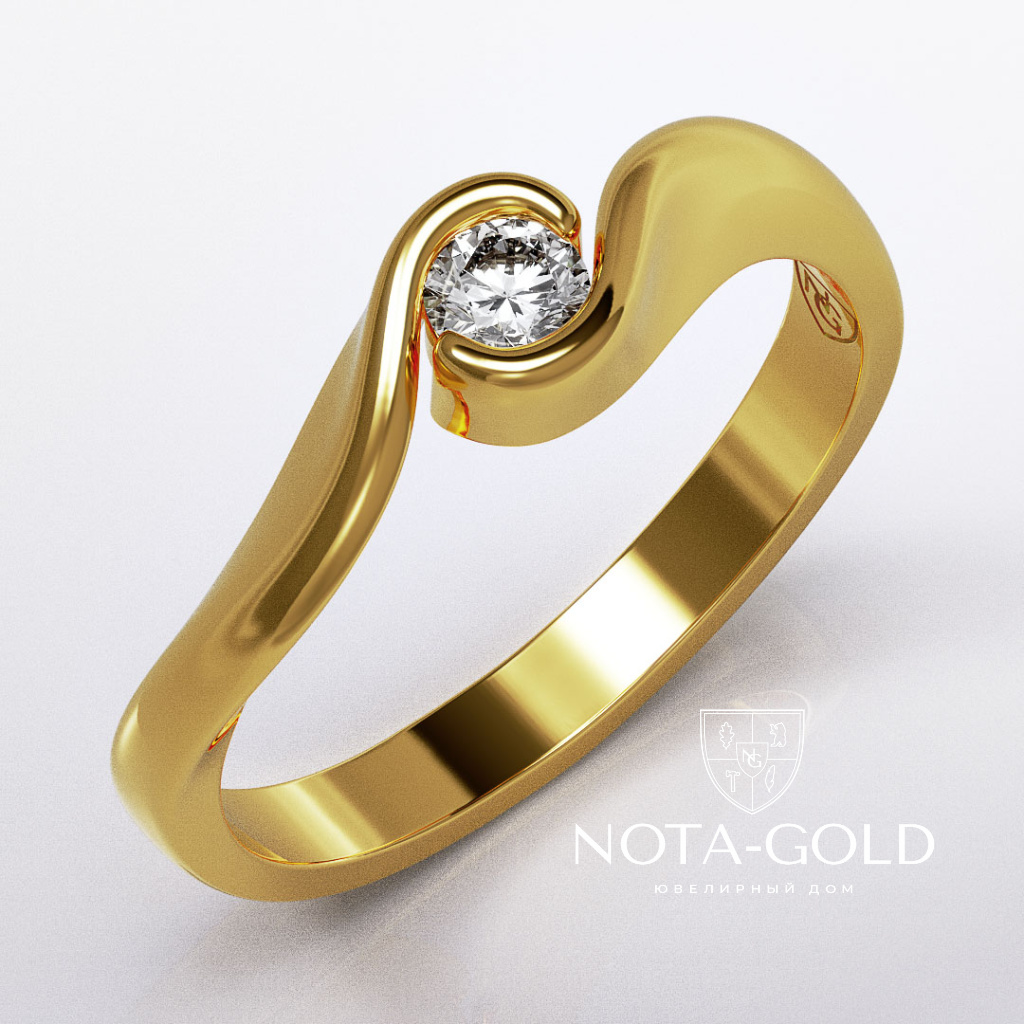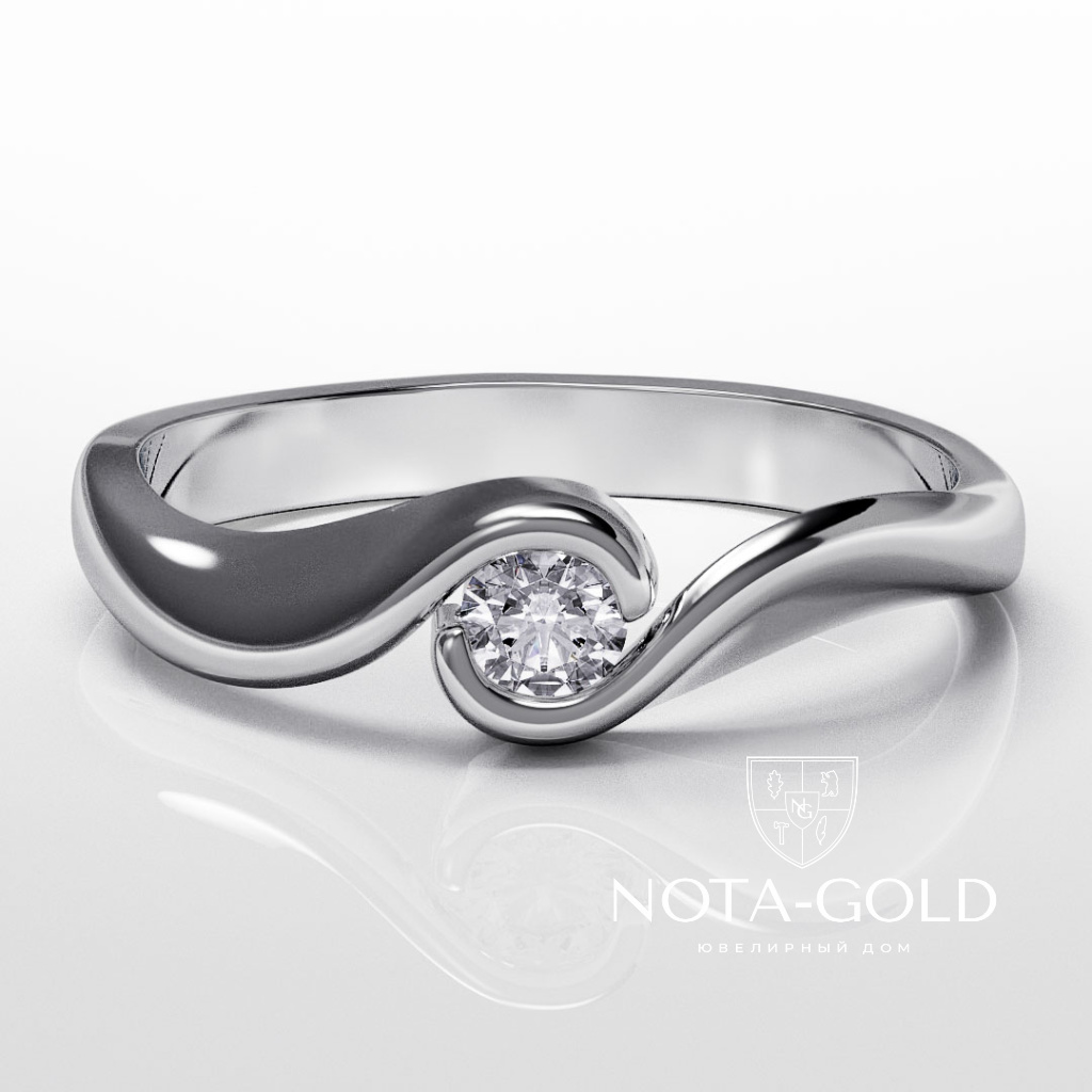 Помолвочное кольцо Волны с искусственным бриллиантом из белого золота (Вес 2,6 гр.)