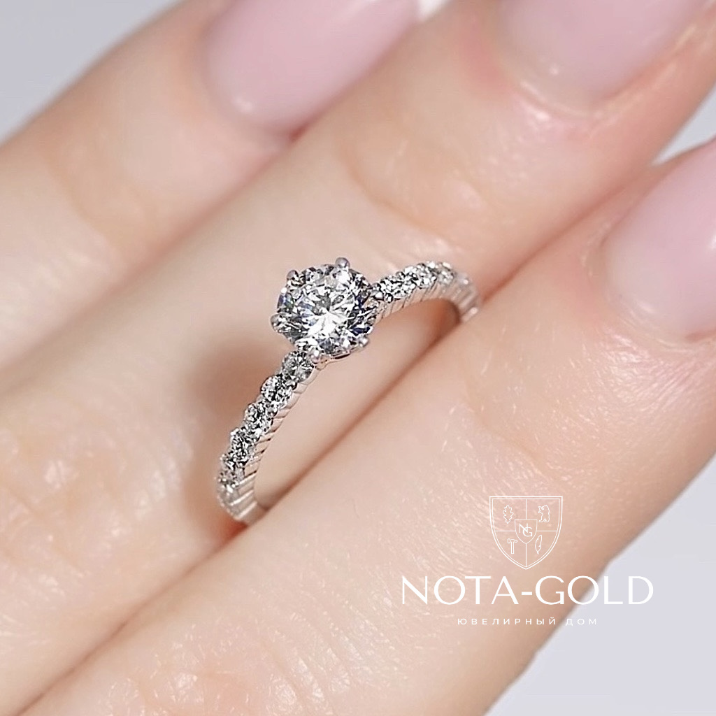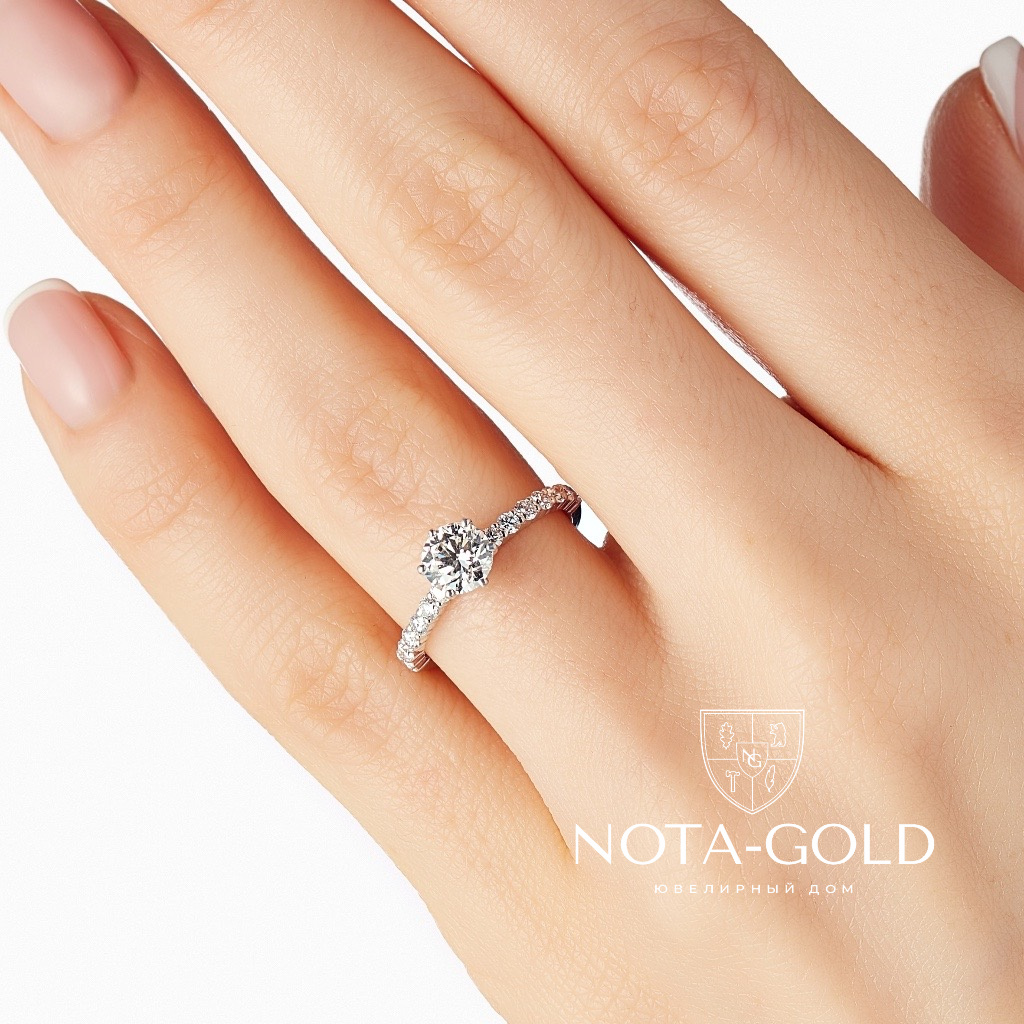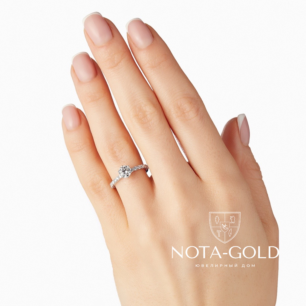 Кольцо с бриллиантом 0,7ct и дорожкой бриллиантов 1,8 мм-14 шт.
