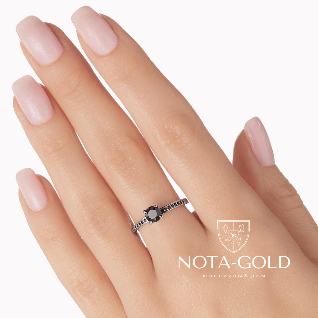 Помолвочное кольцо из белого золота с черными бриллиантами (Вес 3 гр.)