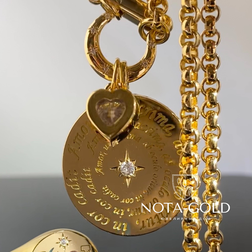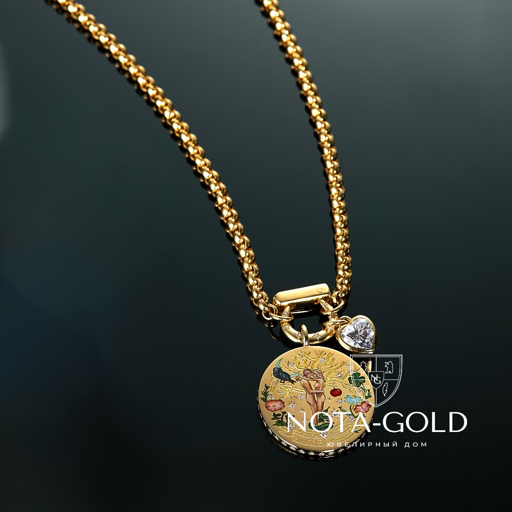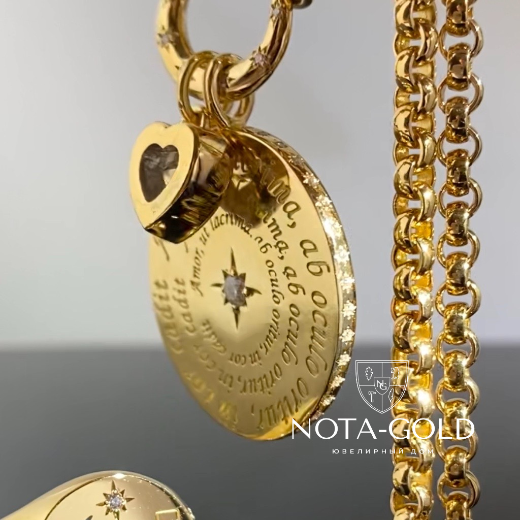 Золотая подвеска Vita Est Amor с бриллиантами гравировкой и эмалью (Вес 30 гр.)