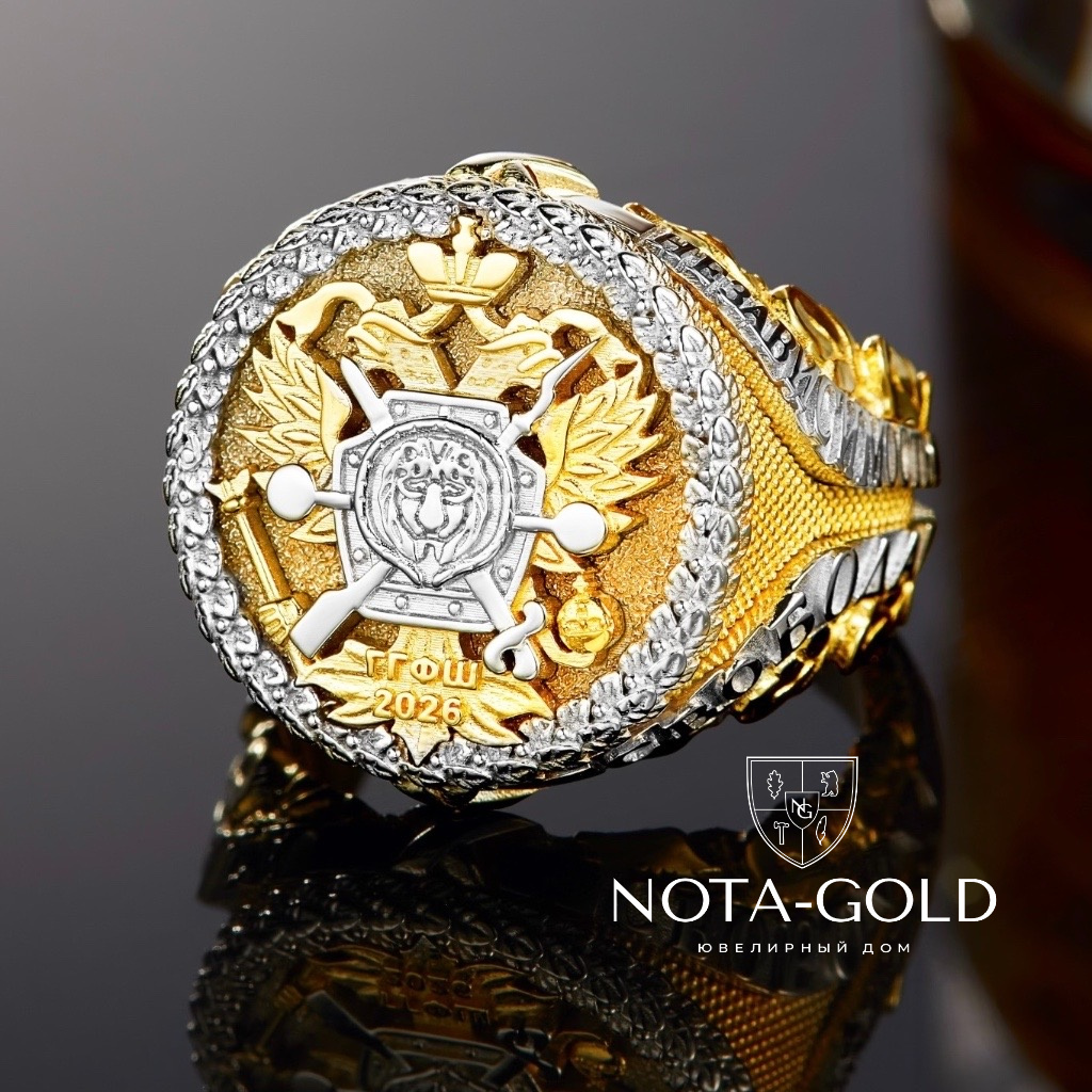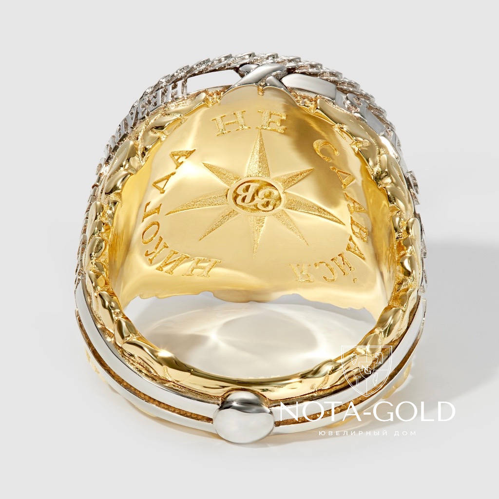 Мужское кольцо печатка из желтого золота с личной символикой (Вес 30 гр.)