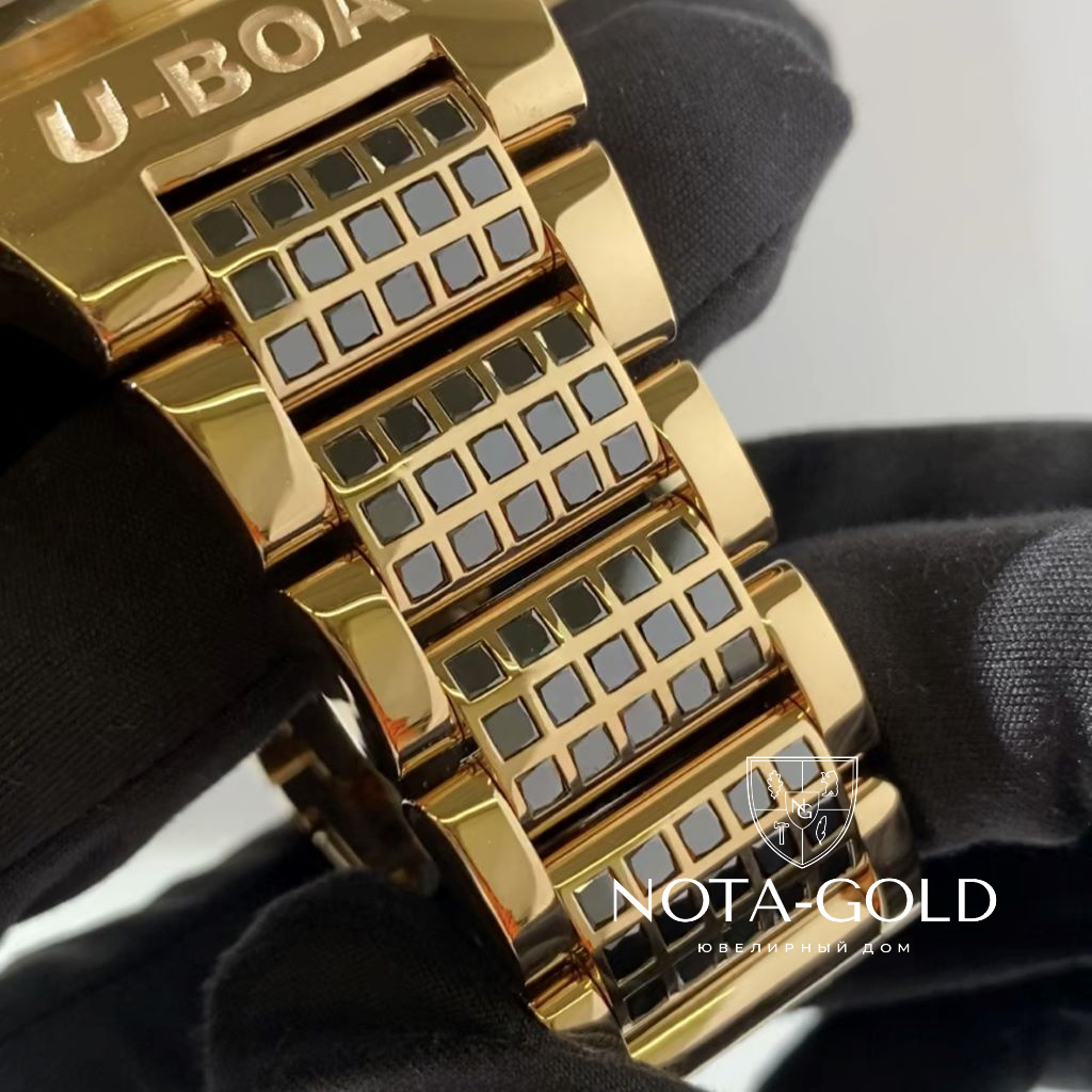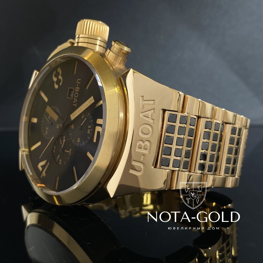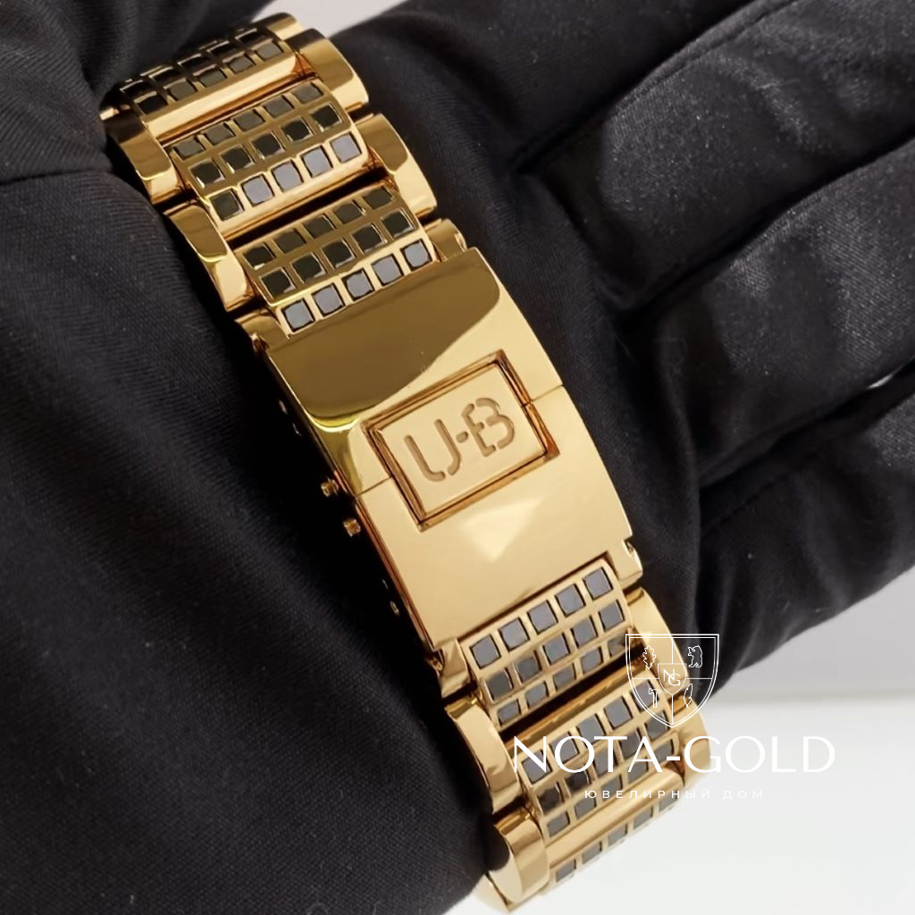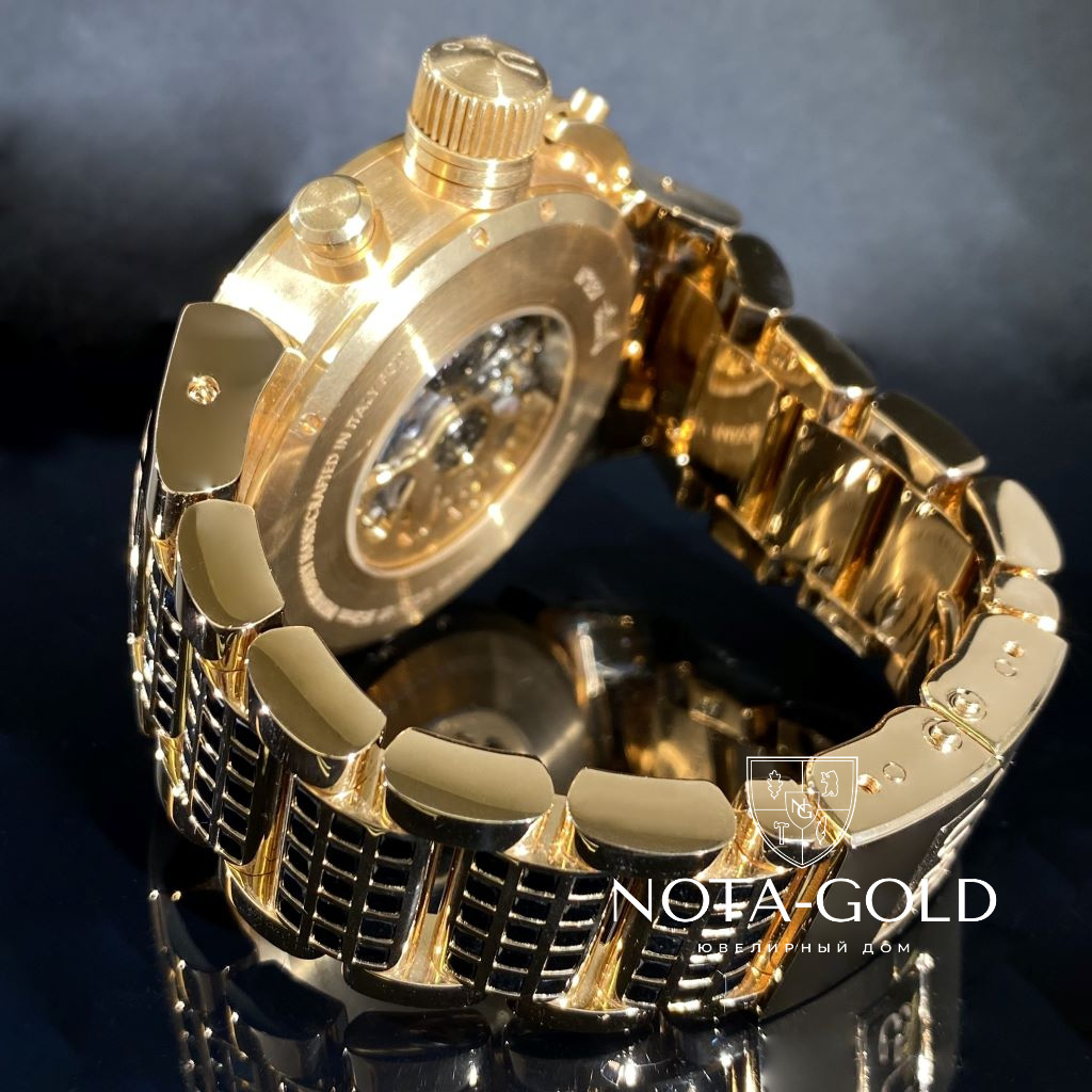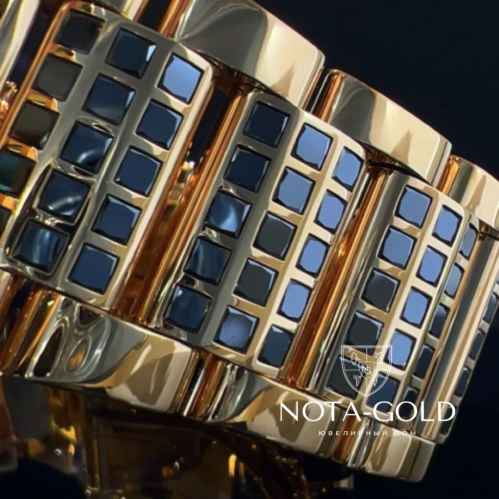 Браслет для часов из жёлтого золота 750 пробы с черными бриллиантами и гравировкой (Вес 156 гр.)