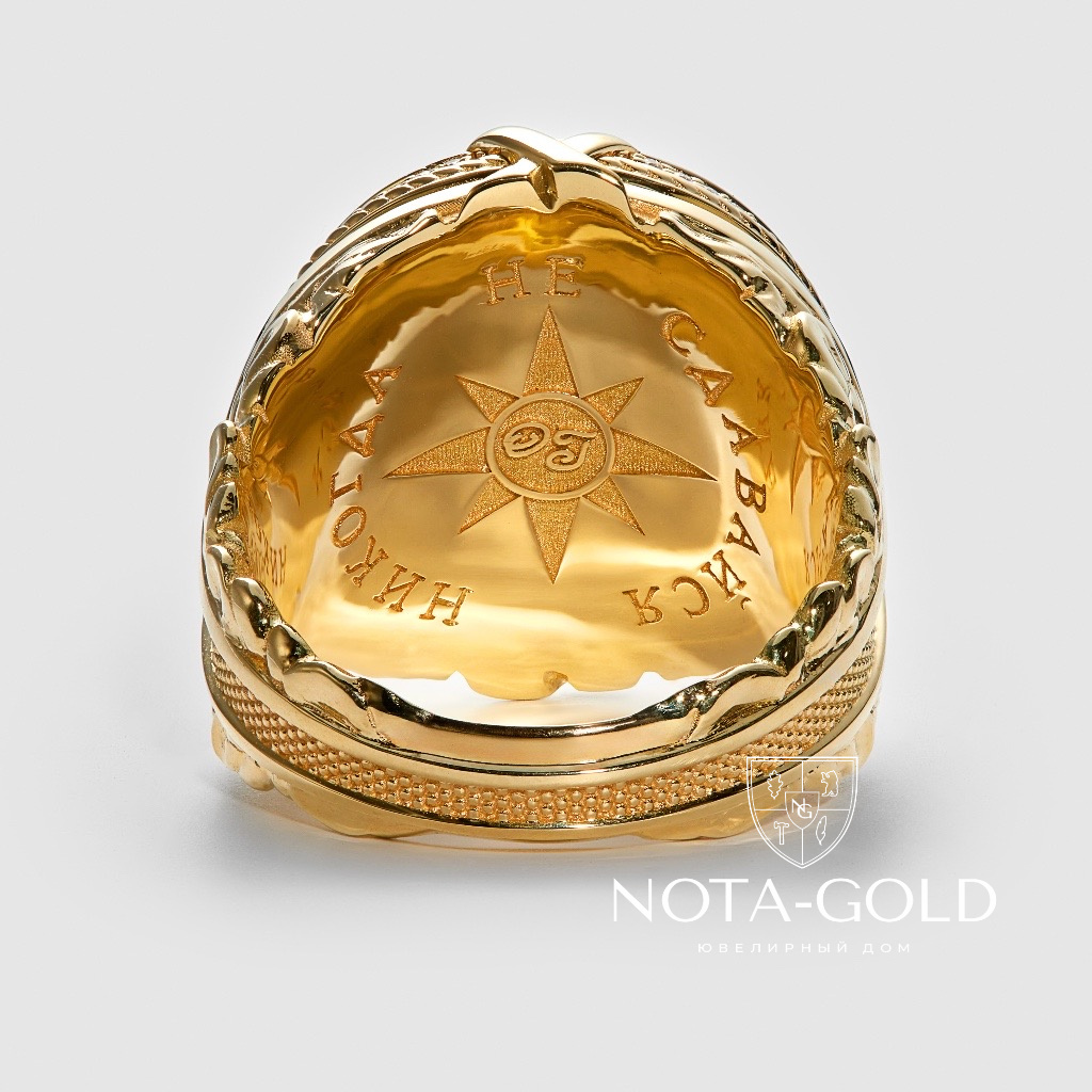 Мужское кольцо Рак из желтого и белого золота с бриллиантами и гравировкой (Вес 33,6 гр.)