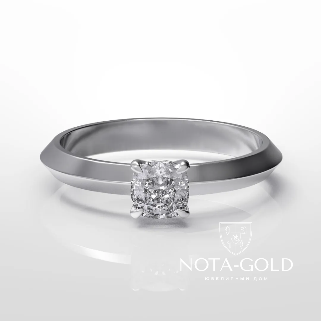Помолвочное кольцо из белого золота с бриллиантом огранки Кушон (Вес 2 гр.)