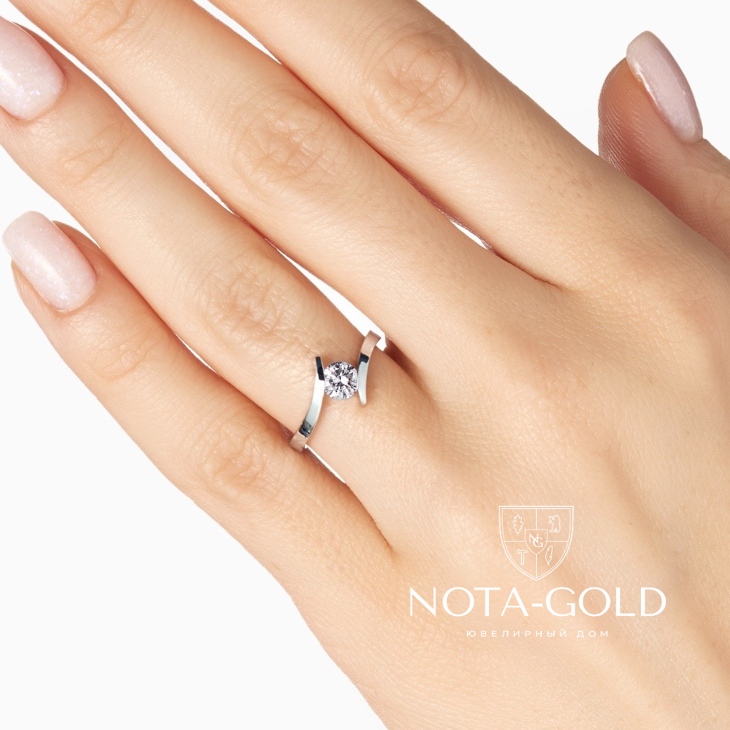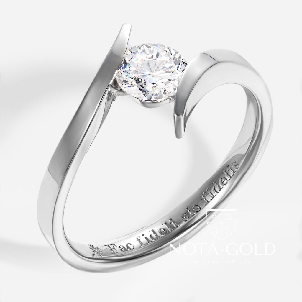 Помолвочное кольцо из белого золота с выращенным бриллиантом и гравировкой (Вес 2,1 гр.)