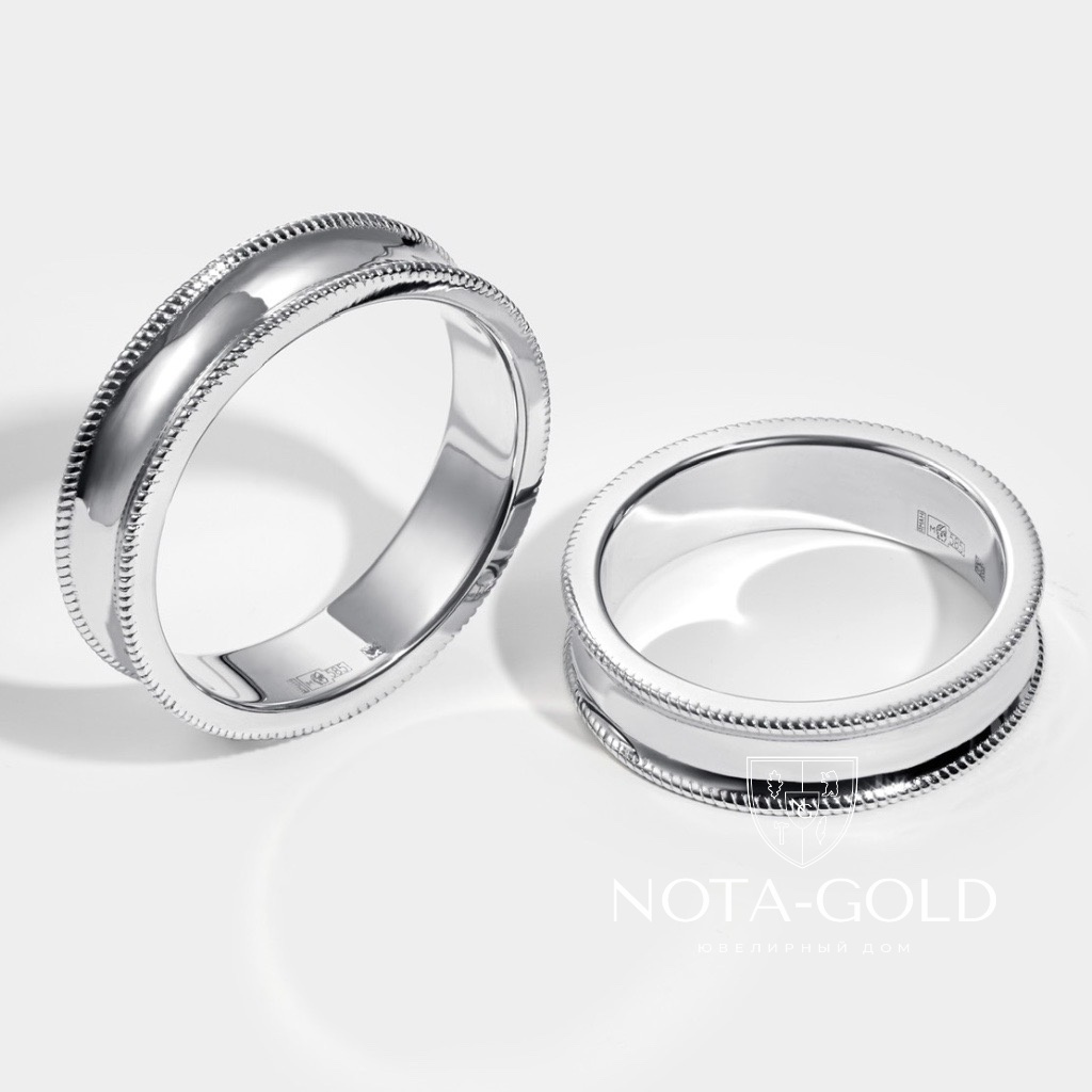 Обручальные кольца вогнутого сечения из белого золота с узором (Вес пары 12 гр.)