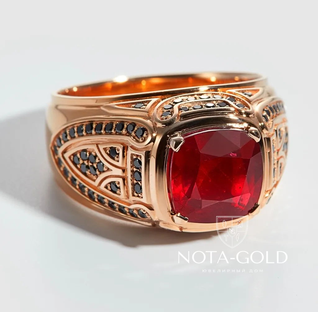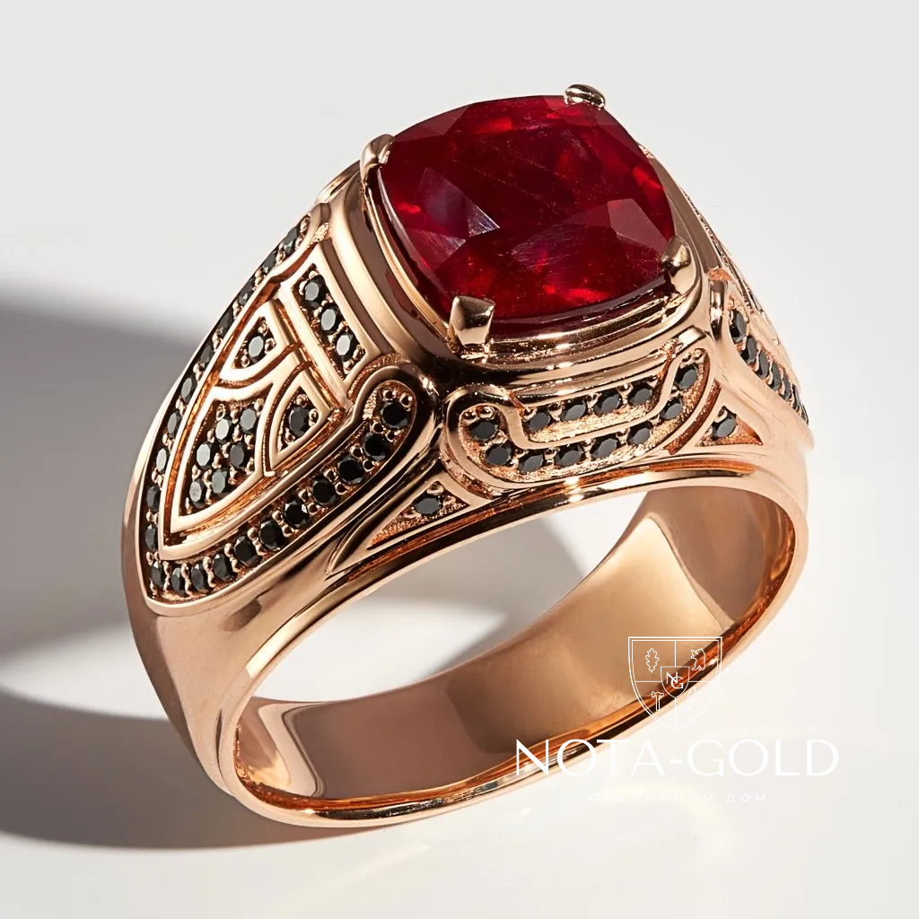 Кольцо с Рубином и чёрными бриллиантами (Вес: 16,5 гр.)