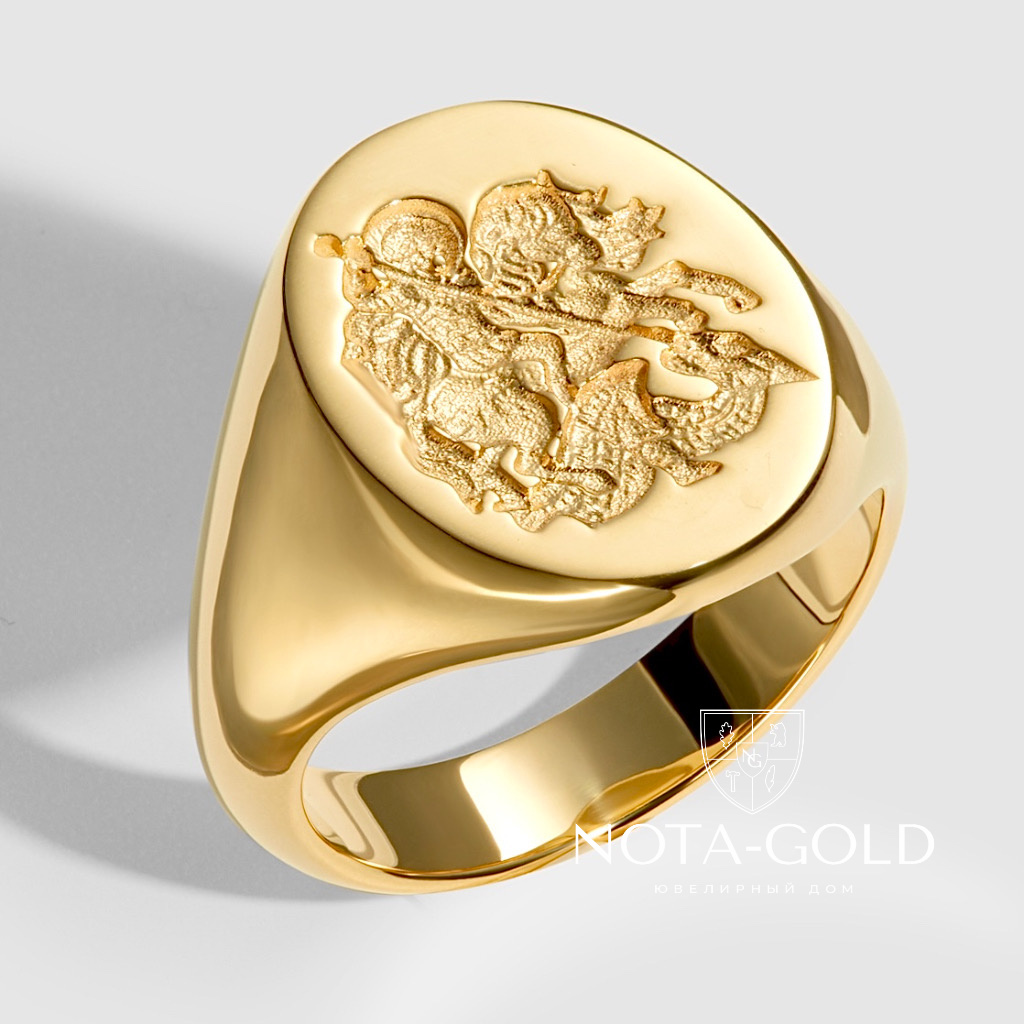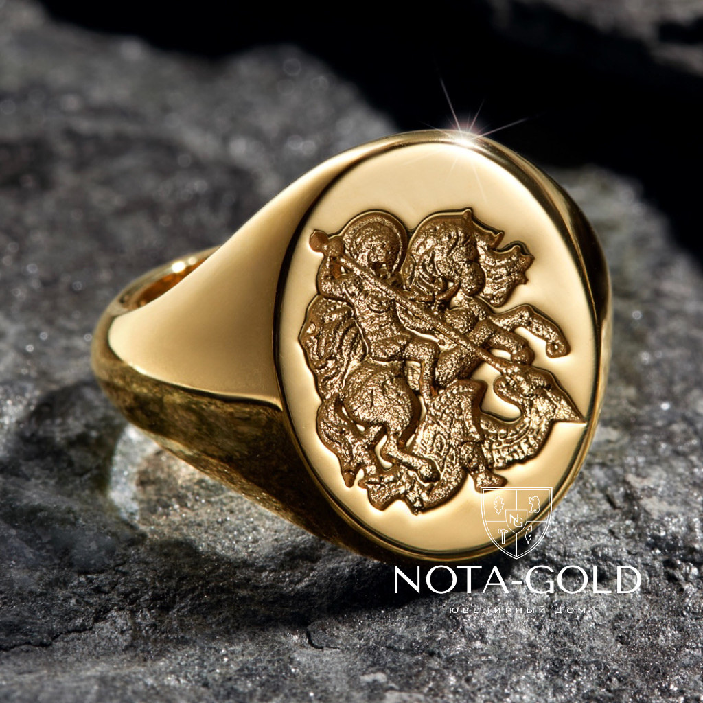 Золотая печатка св Георгий с овальной площадкой (Вес 14 гр.)